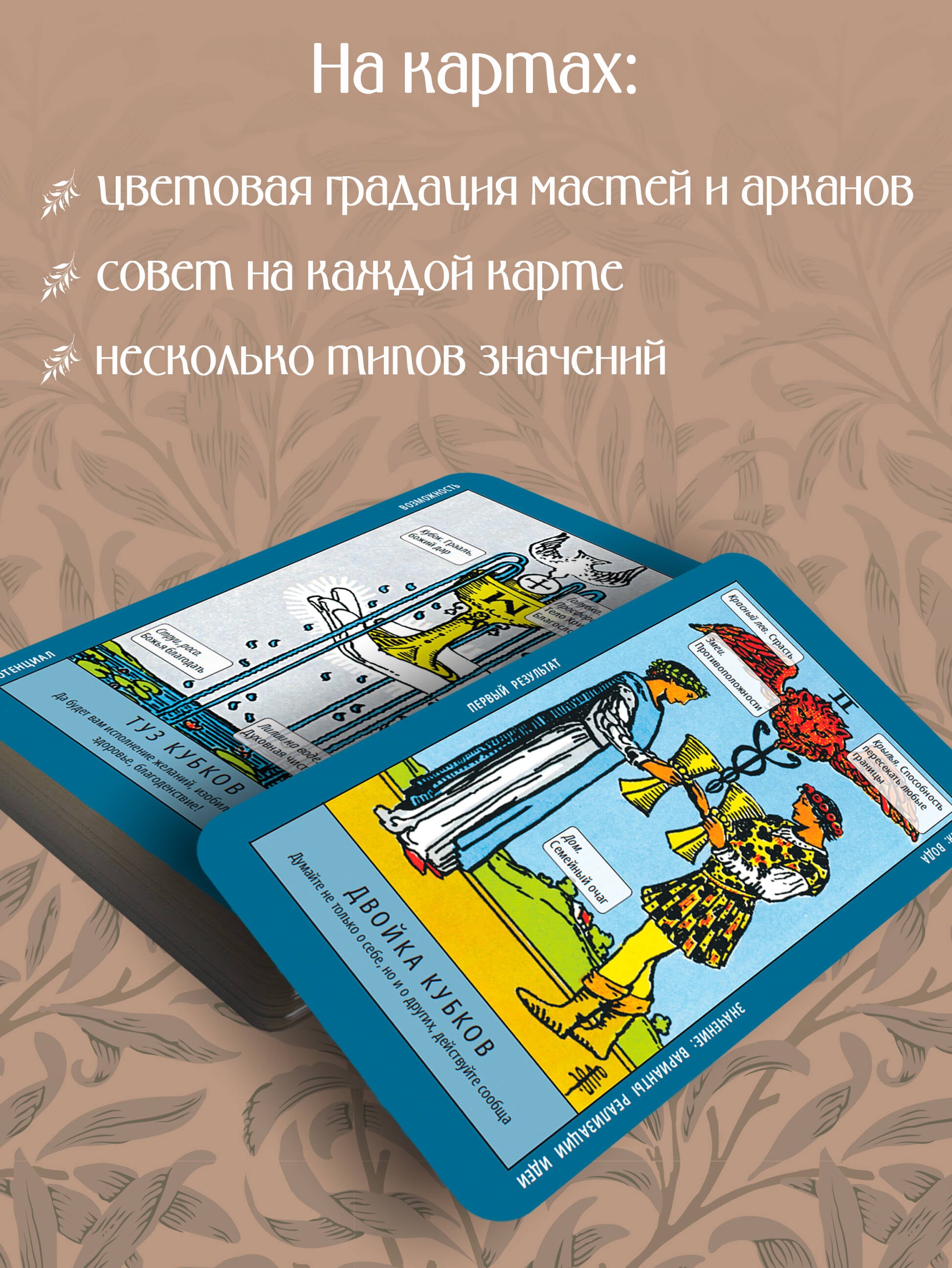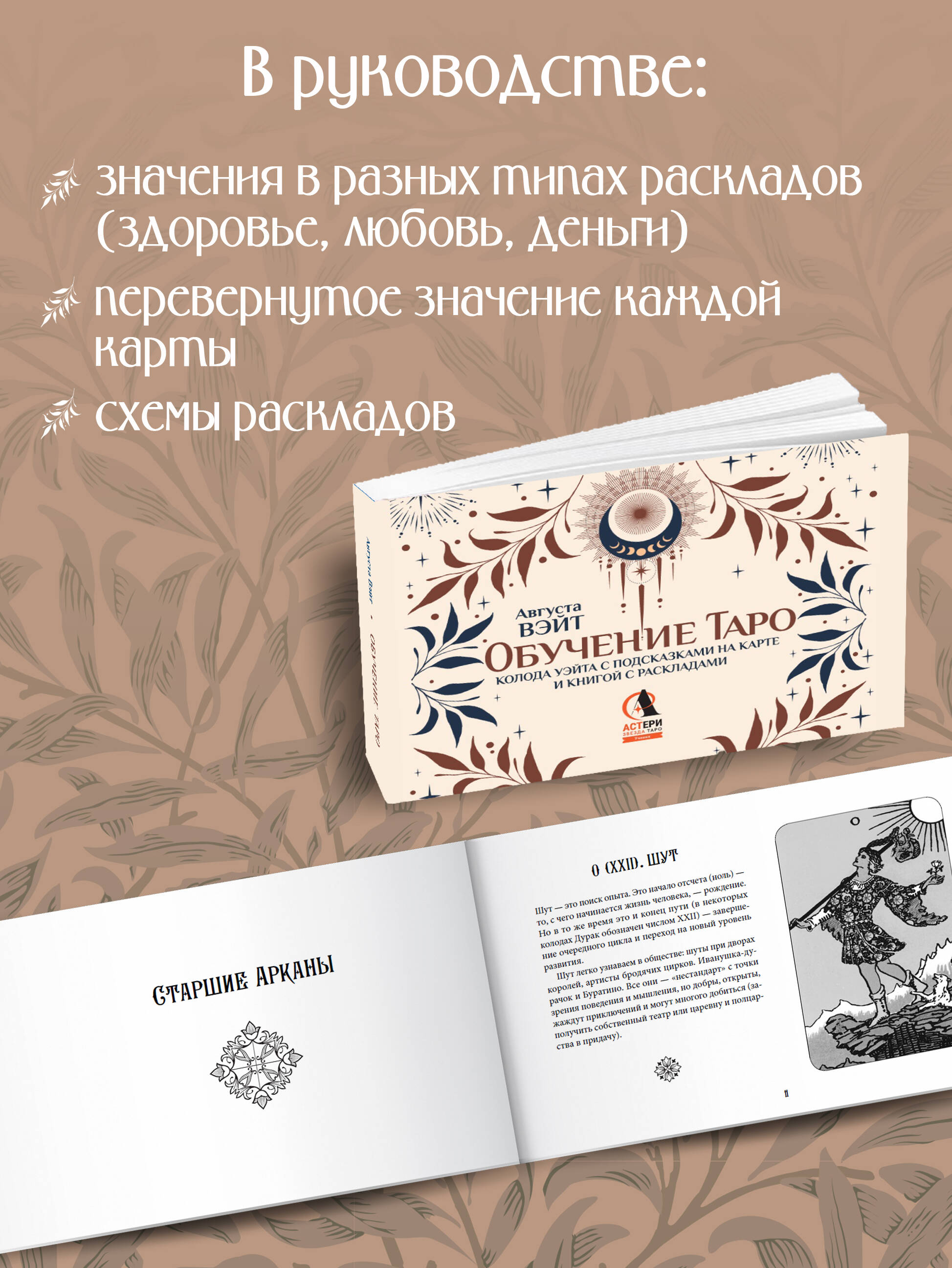 Обучение таро. Колода Уэйта с подсказками на карте и книгой с раскладами