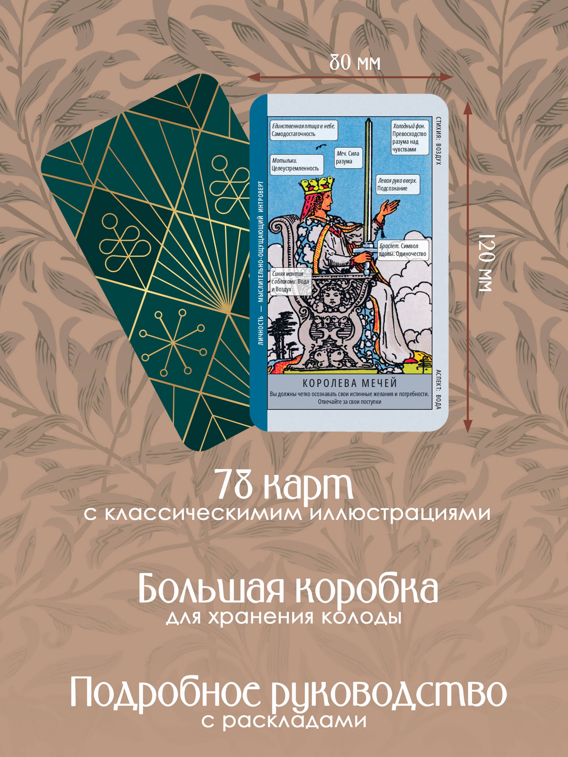 Базовая колода Таро Артура Уэйта, максимально понятная для новичков, с подсказками на самой карте (подписаны символы, цветом отмечены масти) в комплекте с подробной книгой-инструкцией и 80 раскладами на самые волнующие темы. Классические иллюстрации Таро еще никогда не были столь информативны! Удобная форма позволит вам осваивать Таро в процессе гаданий - вы можете начать, как только распакуете коробку. И доверять сможете уже первым раскладам, ведь вся информация и на картах, и в инструкции основана на сочинениях мэтра Артура Уэйта.| Издательство | Издательство "АСТ" |