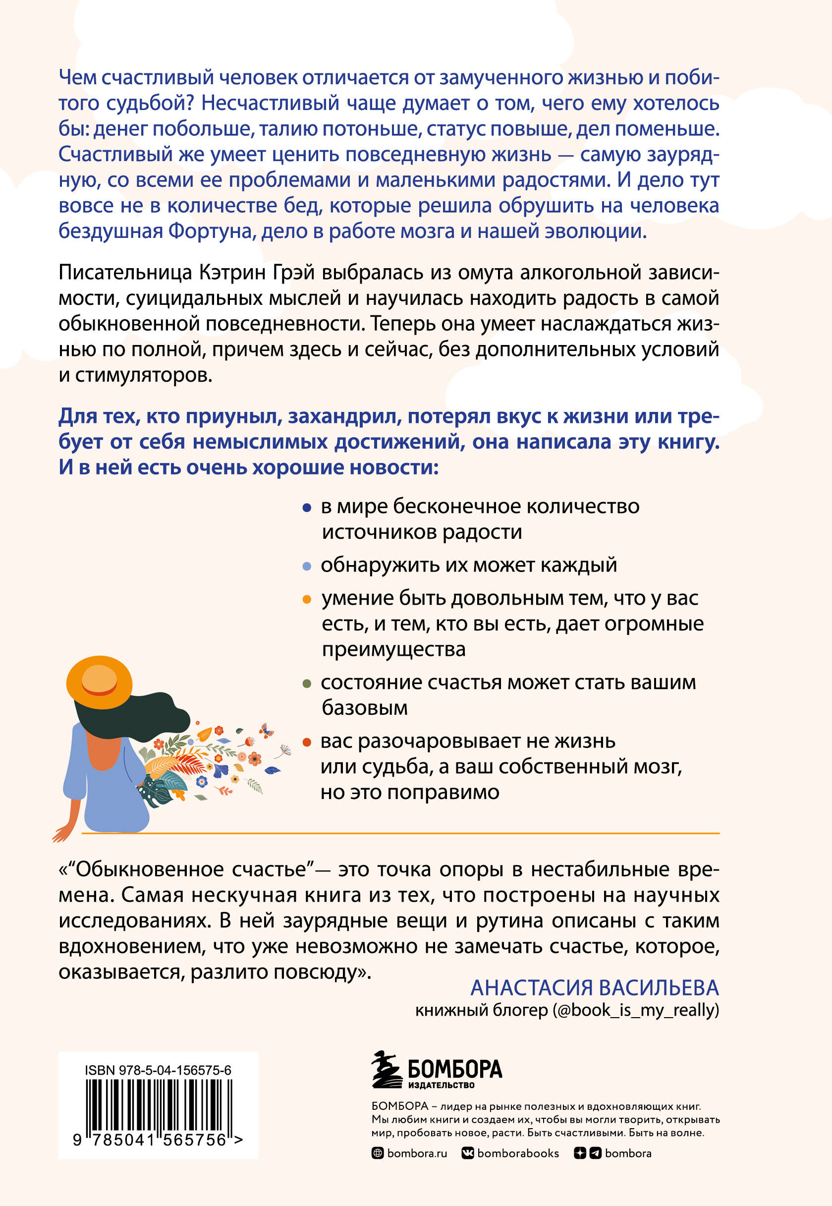Чем счастливый человек отличается от замученного жизнью и побитого судьбой? Несчастливый чаще думает о том, чего ему хотелось бы: денег побольше, талию потоньше, статус повыше, дел поменьше. Счастливый же умеет ценить повседневную жизнь - самую заурядную, со всеми ее проблемами и маленькими радостями. И дело тут вовсе не в количестве бед, которые решила обрушить на человека бездушная Фортуна, дело в работе мозга и нашей эволюции. Писательница Кэтрин Грэй выбралась из омута алкогольной зависимости, суицидальных мыслей и научилась находить радость в самой обыкновенной повседневности. Теперь она умеет наслаждаться жизнью по полной, причем здесь и сейчас, без дополнительных условий и стимуляторов. Для тех, кто приуныл, захандрил, потерял вкус к жизни или требует от себя немыслимых достижений, она написала эту книгу. И в ней есть очень хорошие новости: - в мире бесконечное количество источников радости; - обнаружить их может каждый; - умение быть довольным тем, что у вас есть, и тем, кто вы есть, дает огромные преимущества; - состояние счастья может стать вашим базовым; - вас разочаровывает не жизнь или судьба, а ваш собственный мозг, но это поправимо. «Я не пример, не образец для подражания и не гуру самопомощи. Я лишь когда-то запутавшийся человек, который увлекается психологией и нейробиологией, заваливает вопросами экспертов, глубоко погружается в сотни академических исследований, пробует разные штуки и рассказывает о том, что узнал». - Кэтрин Грэй| Издательство | ООО "Издательство "Эксмо" |