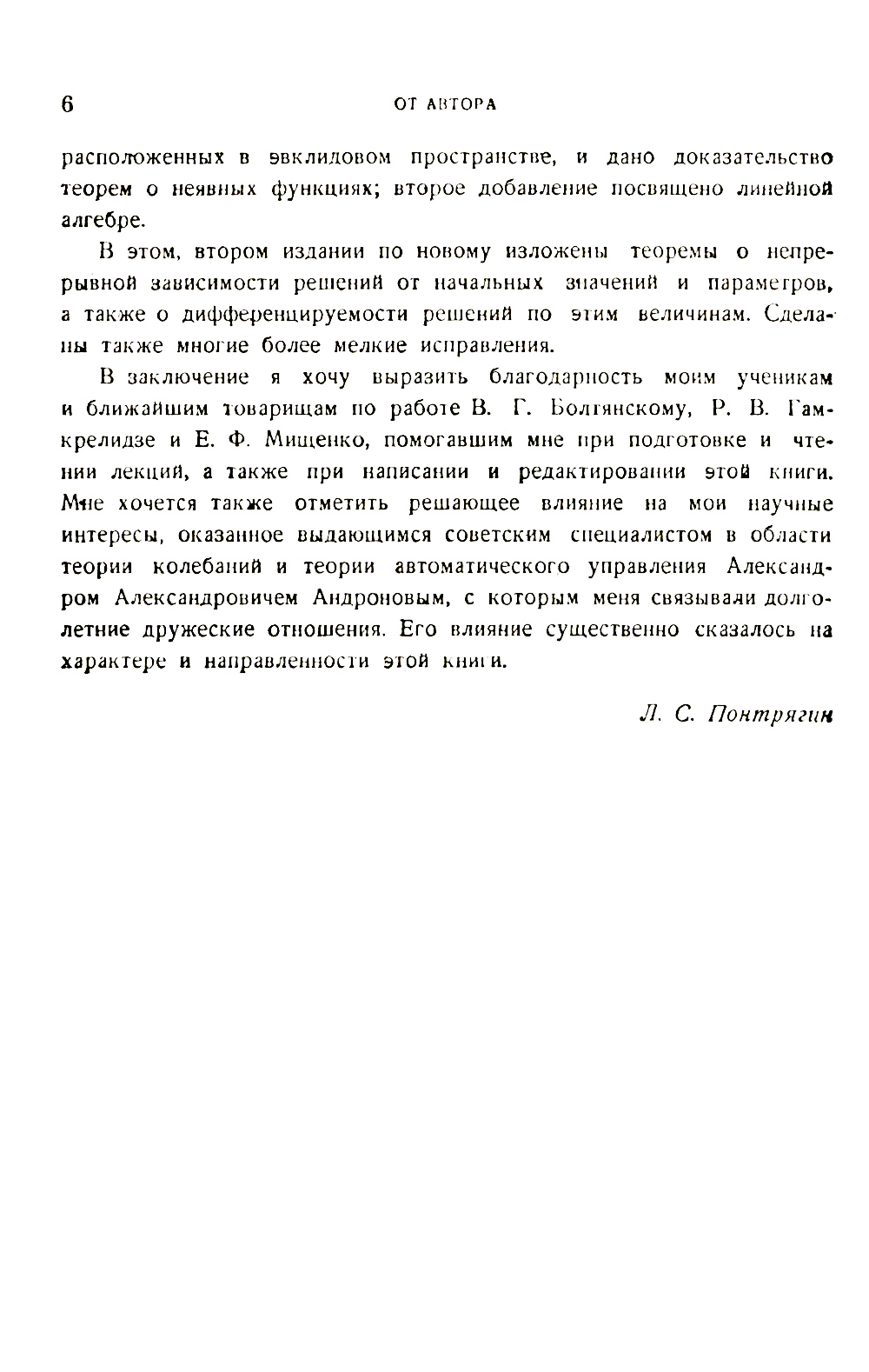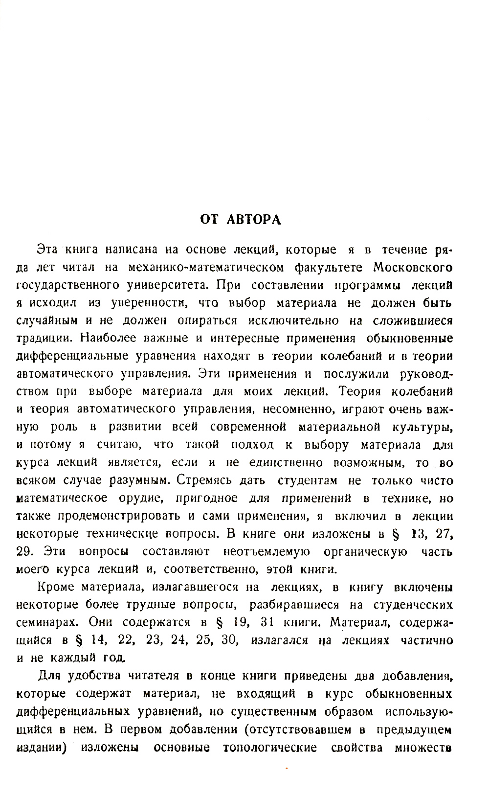 Вниманию читателей предлагается классический учебник по математике, написанный на основе лекций, которые автор, выдающийся советский математик Л.С. Понтрягин, в течение ряда читал на механико-математическом факультете Московского государственного университета имени М.В. Ломоносова. По мнению автора, наиболее важные и интересные применения обыкновенные дифференциальные уравнения находят в теории колебаний и в теории автоматического управления. Эти применения и послужили руководством при выборе материала для курса лекций. Помимо этого материала, снабженного примерами с подробными решениями, в книгу включены некоторые более трудные вопросы, разбиравшиеся на студенческих семинарах. Книга предназначена студентам математических специальностей университетов, аспирантам, преподавателям, научным работникам.