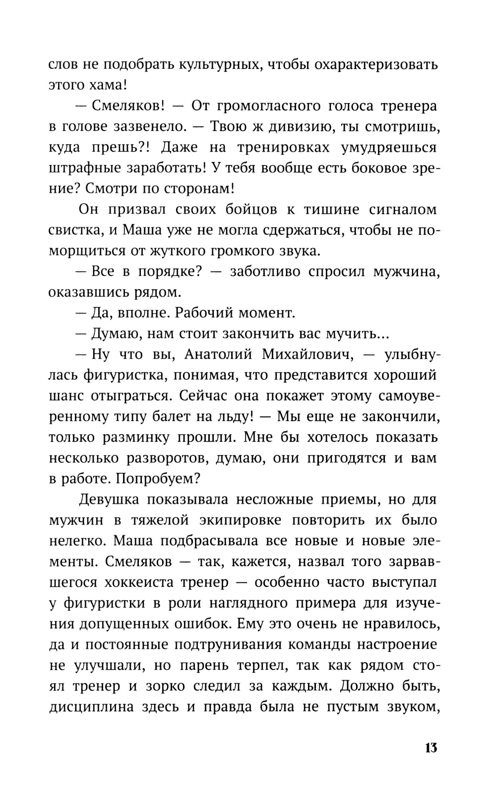 Он - молодой перспективный хоккеист одной из самых успешных команд КХЛ. Его жизнь - вечная борьба и стремление к новым победам. Она - юная фигуристка, имя которой давно на устах у фанатов фигурного катания. Эксперты прочат девушке успешное спортивное будущее. Она для него - зазнайка. Он для нее - грубиян. В их отношениях не просто лед - самая настоящая Арктика.| Издательство | Маракуйя |