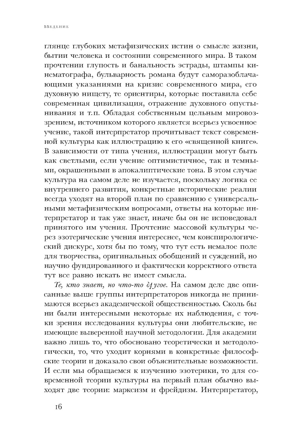 Уже в самой этимологии слова "эзотерический" содержится указание на таинственный характер знания, доступного только узкому кругу посвященных. Но что происходит, когда знание для избранных становится частью массовой культуры? Как сочетается таинственное и популярное? Решению этих и других вопросов посвящено исследование Павла Носачева. Автор прослеживает путь формирования эзотерических идей, образов и мифологем от середины XIX века (периода их становления) до современности, анализируя влияние эзотеризма на литературу, авангардный и массовый кинематограф, а также популярную музыку. Из книги читатель узнает, как эзотеризм объединяет Артура Мейчена и Говарда Лавкрафта, Антона Лавея и Резу Негарестани, Кеннета Энгера и Дэвида Линча, БГ и "Оргию праведников", Army of Lovers и Current 93, а также других писателей, музыкантов и режиссеров. Павел Носачев - доктор философских наук, профессор Школы философии и культурологии НИУ ВШЭ, автор книги "Отреченное знание", вышедшей в издательстве "НЛО".