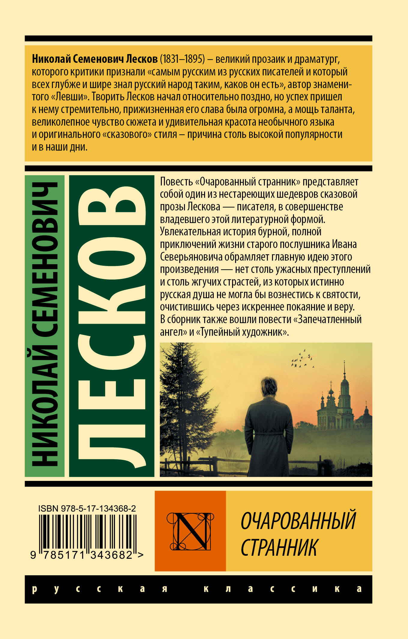Повесть "Очарованный странник" представляет собой один из нестареющих шедевров сказовой прозы Лескова - писателя, в совершенстве владевшего этой литературной формой. Увлекательная история бурной, полной приключений жизни старого послушника Ивана Северьяновича обрамляет главную идею этого произведения - нет столь ужасных преступлений и столь жгучих страстей, из которых истинно русская душа не могла бы вознестись к святости, очистившись через искреннее покаяние и веру. В сборник также вошли повести "Запечатленный ангел" и "Тупейный художник".| Издательство | ИЗДАТЕЛЬСТВО "АСТ" |