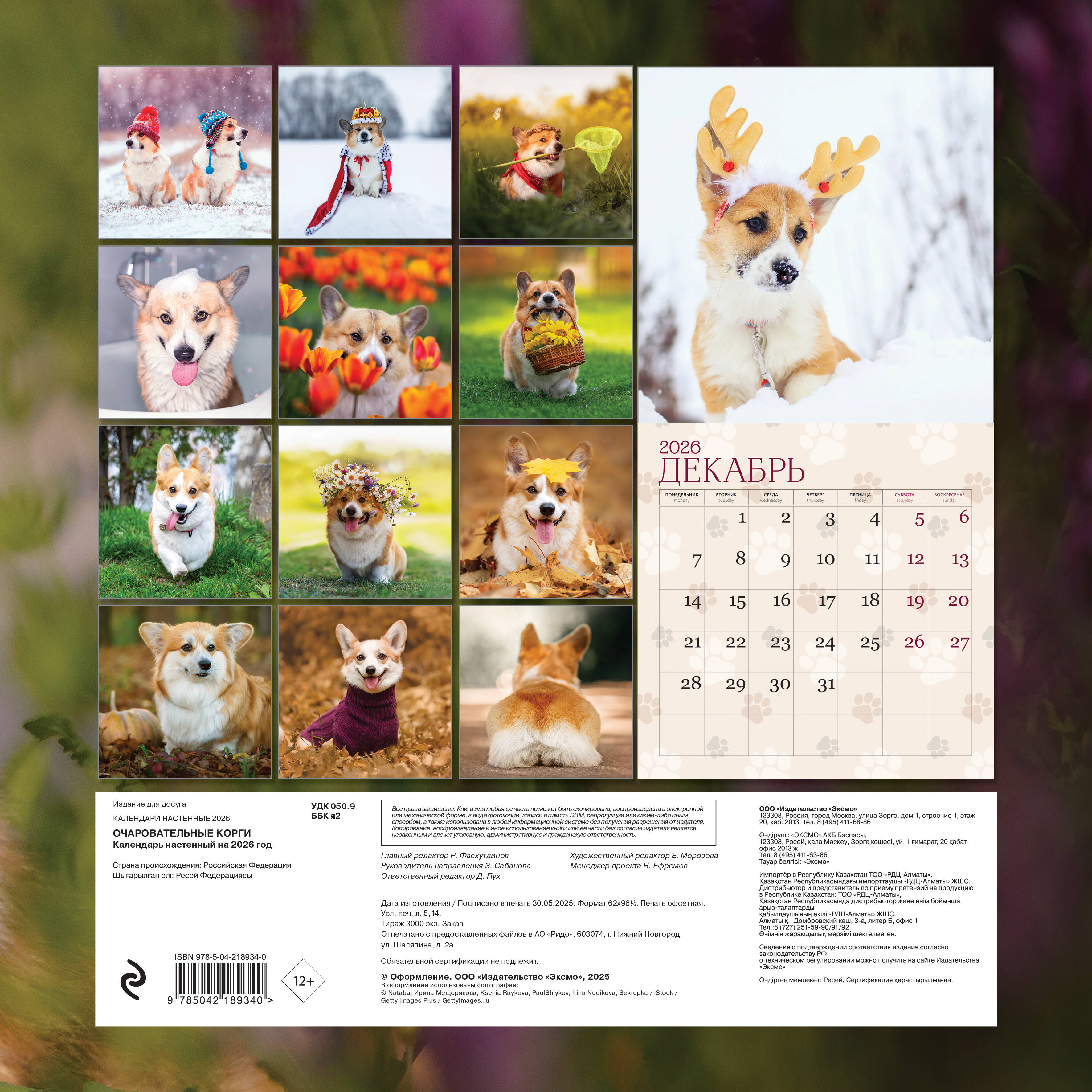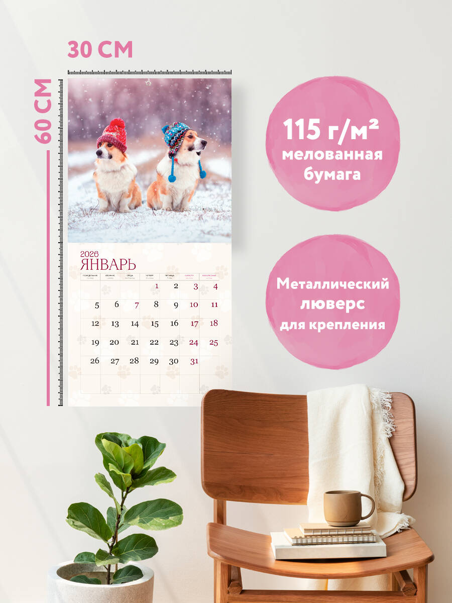 О календаре: Очаровательный календарь для тех, кто без ума от корги! Порадуй себя или близкого, чтобы каждый день начинался со взгляда на милую собачку! Удобные настенные календари станут отличным поводом улыбнуться с утра! Эксклюзивные иллюстрации, качественное полиграфическое исполнение, удобный формат (300х300 мм) - все это будет дарить вам такие незабываемые эмоции каждый день, что вы не заметите, как пролетит целый год! О серии: Наши настенные календари отличаются высоким качеством исполнения! Тщательно подобранные иллюстрации, напечатанные на глянцевой бумаге высочайшего качества, станут настоящим украшением дома, а в календарной сетке найдется место для ваших планов: большие клетки позволят делать записи и организовать свой год! В календаре также отмечены все государственные праздники. В серии настенных календарей издательства «ЭКСМО» каждый найдет тему по вкусу: великие художники, великолепные подборки с самыми знаменитыми произведениями искусства, легендарные кинематографические саги и игры, главные книжные авторы и бестселлеры, фотографии и иллюстрации любимых животных и многое-многое другое! Технические параметры: • Тип календаря - настенный перекидной. • Год - 2026. • Календарная сетка - с разбивкой по месяцам. • Вид скрепления - скрепка. • Ширина - 30 см. • Высота - 30 см. • Внутренний блок - мелованная бумага 115 г/м2. • Подложка - плотный гофрокартон для поддержания формы. • Индивидуальная упаковка в плотный целлофановый пакет.| Издательство | ООО "Издательство "Эксмо" |