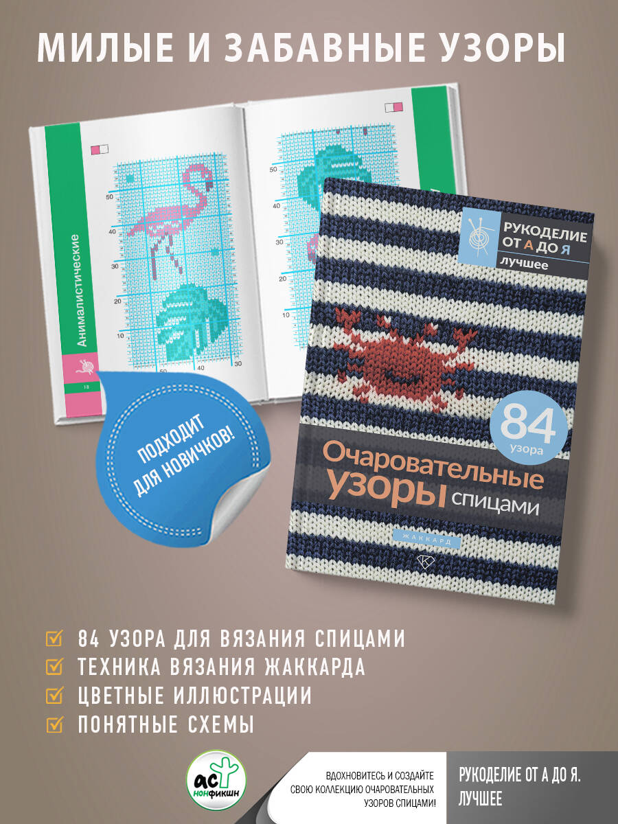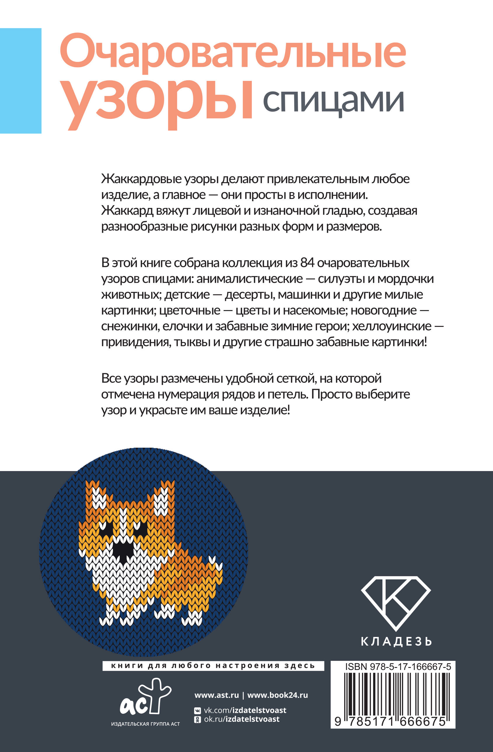 В этой книге собрана коллекция из 84 очаровательных узоров спицами: анималистические - силуэты и мордочки животных; детские - десерты, машинки и другие милые картинки; цветочные - цветы и насекомые; новогодние - снежинки, елочки и забавные зимние герои; хеллоуинсие - привидения, тыквы и другие страшно забавные картинки! Все узоры размечены удобной сеткой, на которой отмечена нумерация рядов и петель. Просто выберите узор и украсьте им ваше изделие!| Издательство | Издательство "АСТ" |