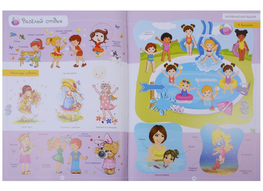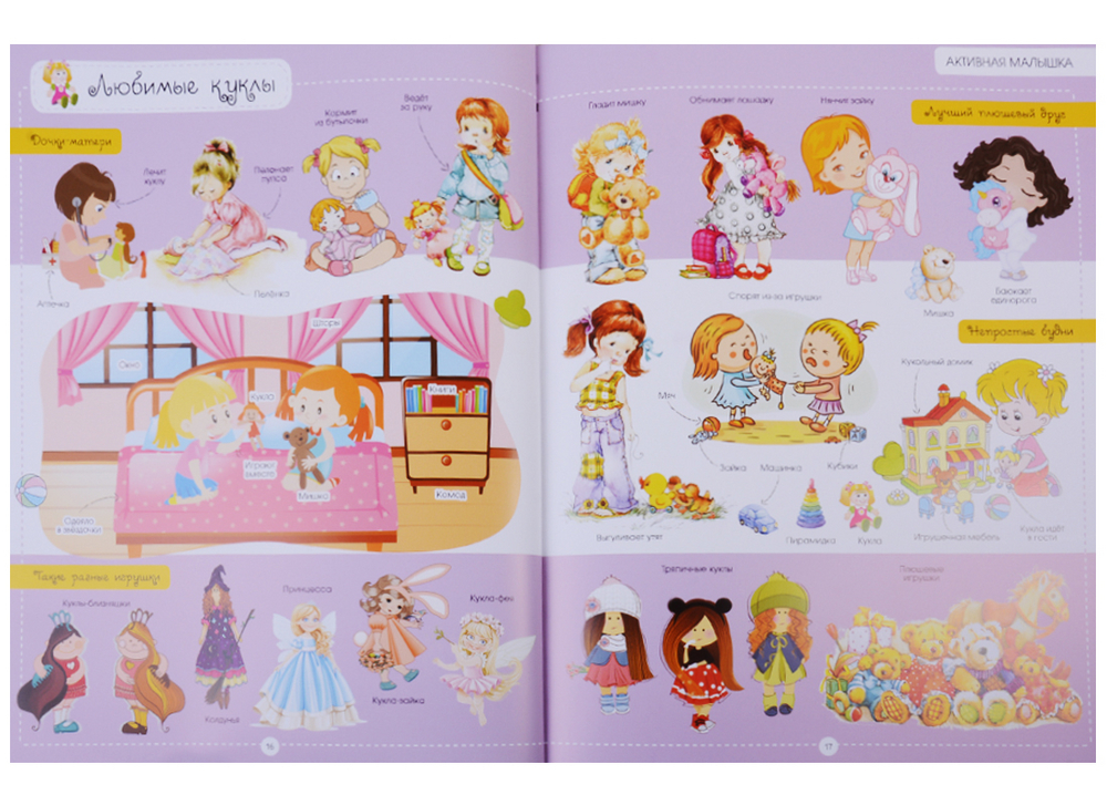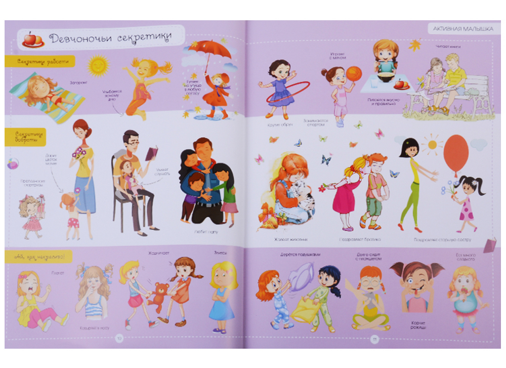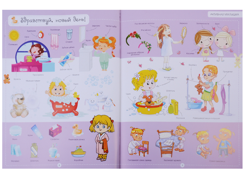 В этой книге собраны самые важные сведения об окружающем мире, которые должна знать ваша малышка. Как одеваться по сезону, как вести себя за столом, режим дня, правила гигиены, здоровое питание, счёт, форма, цвет и не только… Миллион ярких, весёлых и узнаваемых картинок, которые девочка будет с удовольствием рассматривать, помогут развивать её речь, мышление, пополнять словарный запас. Целый мир как на ладони для вашей маленькой почемучки!