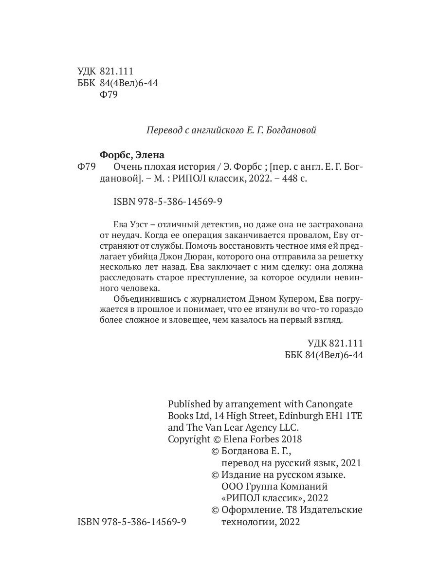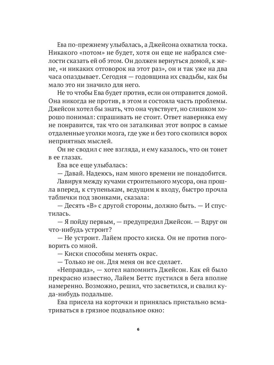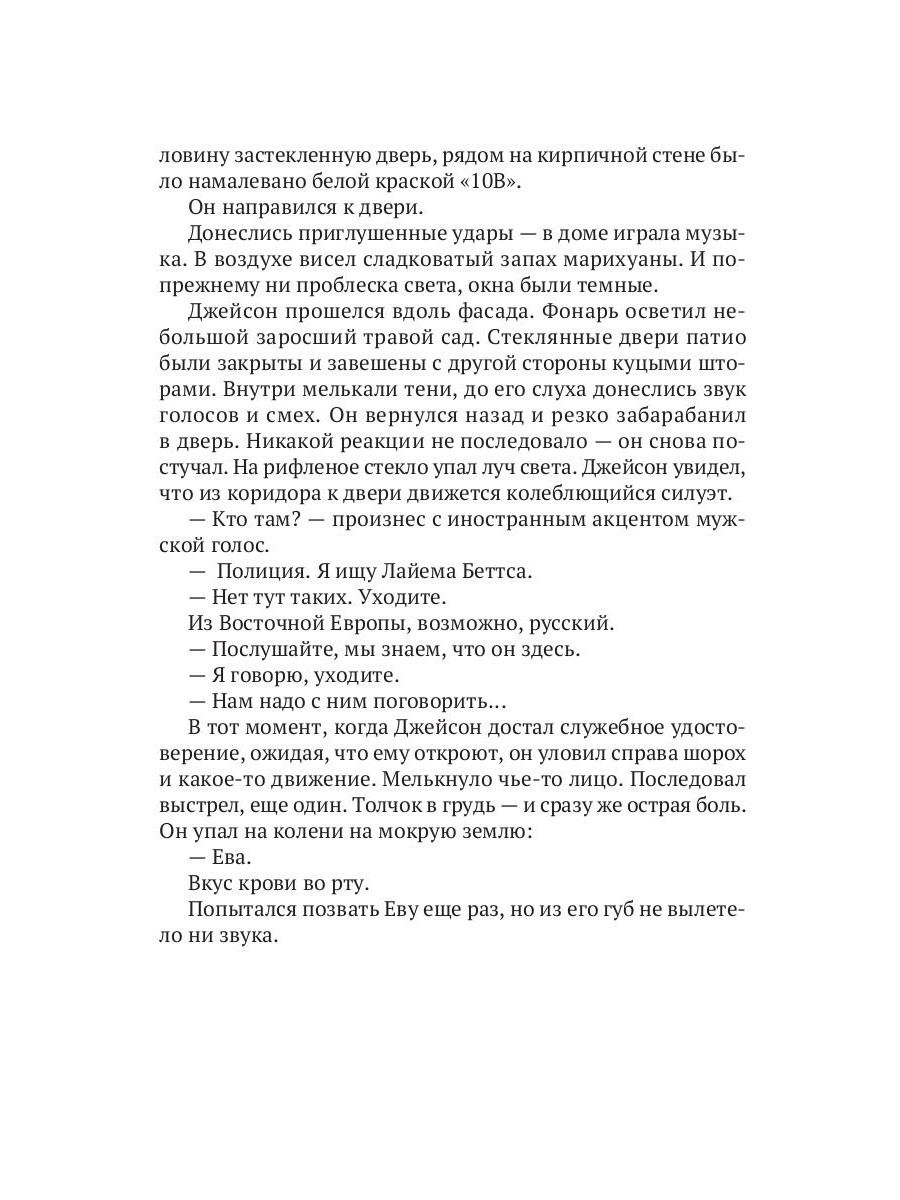Ева Уэст - отличный детектив, но даже она не застрахована от неудач. Когда ее операция заканчивается провалом, Еву отстраняют от службы. Помочь восстановить честное имя ей предлагает убийца Джон Дюран, которого она отправила за решетку несколько лет назад. Ева заключает с ним сделку: она должна расследовать старое преступление, за которое осудили невинного человека. Объединившись с журналистом Дэном Купером, Ева погружается в прошлое и понимает, что ее втянули во что-то гораздо более сложное и зловещее, чем казалось на первый взгляд.| Издательство | Рипол Классик |