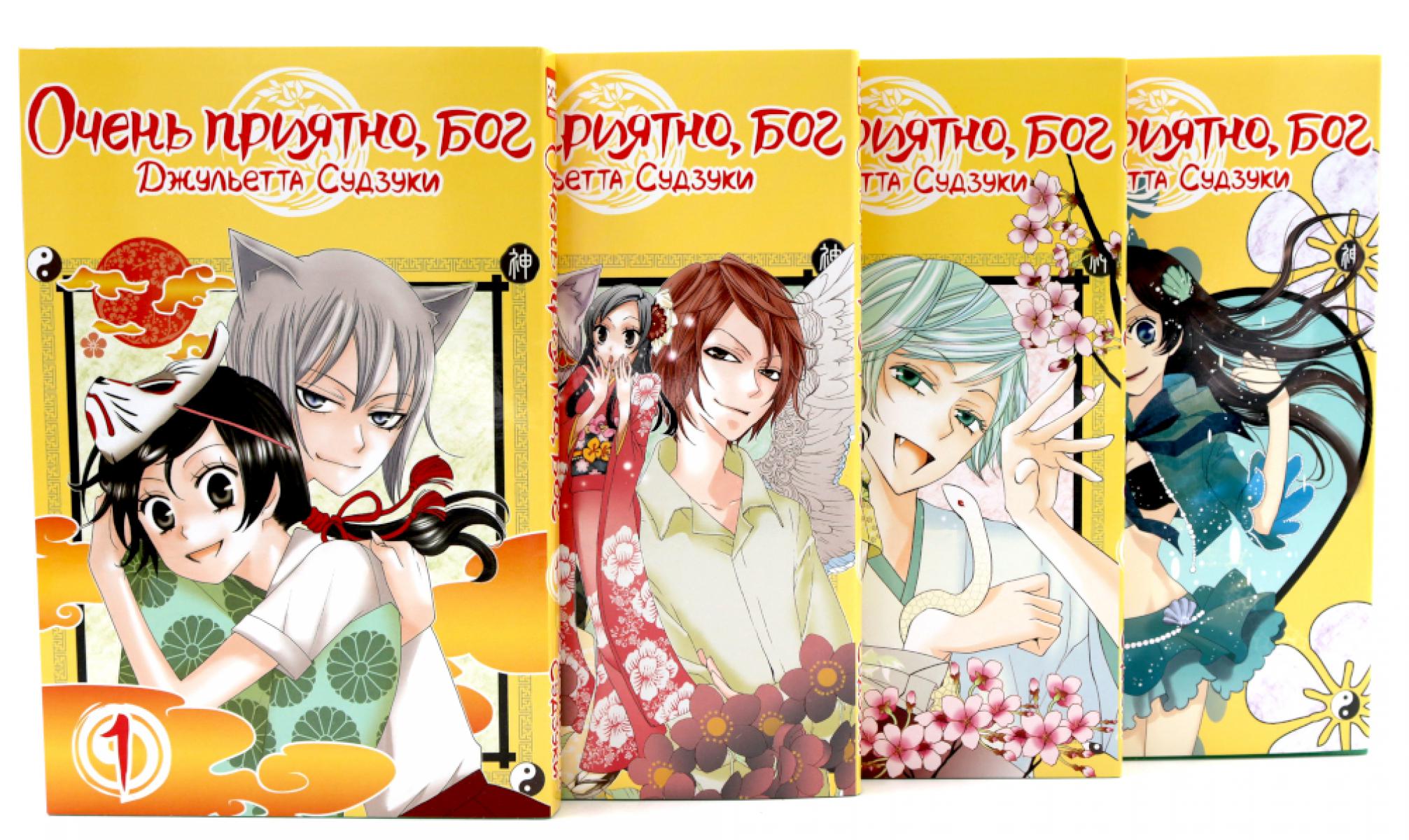 Комплект состоит из четырех томов манги «Очень приятно, бог». В первом томе старшеклассница Нанами Момодзоно оказалась на улице после того, как ее лишили крова из-за долгов отца, а сам отец пропал без вести. Повстречав загадочного незнакомца, она приняла его приглашение остановиться у него и обнаружила, что его «дом» - это заброшенный синтоистский храм. И в обмен на проживание в этом храме Нанами теперь должна выполнять весьма необычные обязанности... . Во втором томе жизнь в храме Микагэ, хозяйкой которого стала Нанами, течет своим чередом: посетителей все так же мало, и заняться особо нечем... И тут как гром среди ясного неба новость: в ее старую школу переводится знаменитый Курама, поп-идол, по которому фанатеют все старшеклассницы в стране! Легко понять желание Нанами вернуться к школьной рутине, но не пожалеет ли она о своем решении и что скажет обо всем этом Томоэ?.. В третьем томе Нанами начинает осознавать, что ее чувства к Томоэ - нечто большее, чем привязанность хозяйки к слуге, и тем больнее ей услышать из его собственных уст, что он не допускает и тени мысли, что когда-нибудь влюбится в человека. Все осложняется еще больше, когда Нанами помогает выбраться на свободу забравшейся в школу змее, и та оставляет на ней клеймо, которое означает не что иное, как помолвку. Нанами не в восторге от этой перспективы, но «жених» не намерен отступаться: он решает попросту похитить Нанами и запереть там, где Томоэ не сможет ее найти... . . В четвертом томе собравшись с духом, Нанами приглашает своего фамильяра вместе сходить в океанариум и наконец признается ему в любви. Хотя ответ оказывается совсем не таким, какой она ожидала, никак не верится, что Томоэ к ней безразличен: ведь он бережет свою богиню как зеницу ока, снова и снова подвергаясь из-за нее риску. Совместная поездка на море оборачивается очередным приключением, при том опасным. Похоже, пришла очередь Нанами спасать Томоэ, а не наоборот. Завеса над темным прошлым белого лиса вот-вот приоткроется...| Издательство | ЭксЭл Медиа |