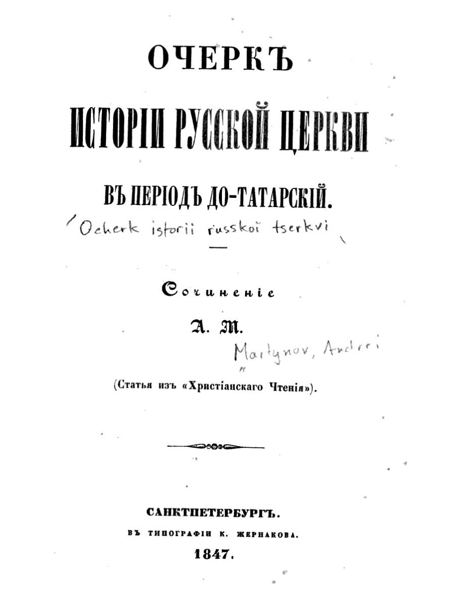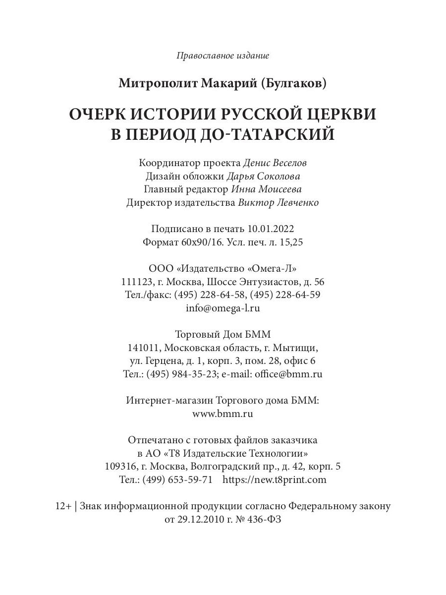 Аннотация: Очерк истории Русской Церкви в период до-татарский