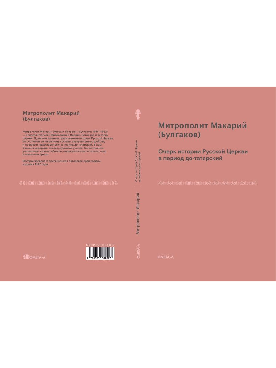 Митрополит Макарий (Михаил Петрович Булгаков; 1816-1882) - епископ Русской Православной Церкви, богослов и историк церкви. В данном издании представлена история русской церкви, ее состояние по внешнему составу, внутреннему устройству и по вере и нравственности в период до-татарский. В нем описана иерархия, паства, духовное учение, богослужение, управление, святые обители, подвижничество и святые лица в известное время. Воспроизведено в оригинальной авторской орфографии издания 1847 года (СПб.: тип. К. Жернакова, 1847. - 196 с.).