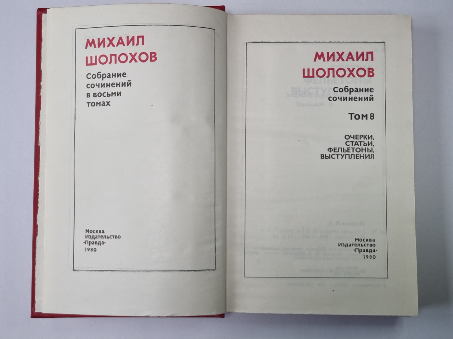 Очерки, Статьи, Фельетоны, Выступления. М.Шолохов. Собрание сочинений в 8-и т. Том 8
