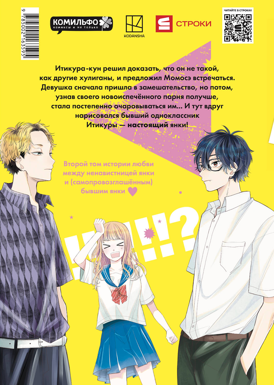 Итикура-кун решил доказать, что он не такой, как другие хулиганы, и предложил Момосэ встречаться. Девушка сначала пришла в замешательство, но потом, узнав своего новоиспечённого парня получше, стала постепенно очаровываться им... И тут вдруг нарисовался бывший одноклассник Итикуры - настоящий янки! Второй том истории любви между ненавистницей янки и (самопровозглашённым) бывшим янки! Три причины для покупки: 1. Очаровательная история любви между пай-девочкой и бывшим хулиганом. 2. Для тех, кому понравилось аниме "Хоримия", "Сладкий лимонад", "Ямада и семь ведьм". 3. Контрастный главный герой - в школе он интеллигентный отличник-очкарик, но внутри всё ещё дерзкий янки, который не побоится дать сдачи.| Издательство | СТРОКИ ООО |