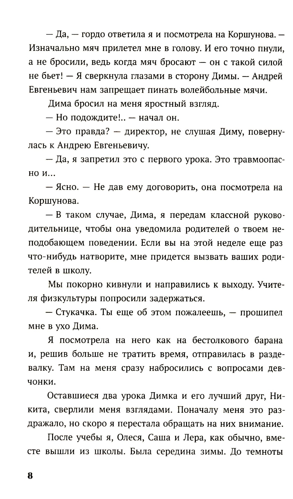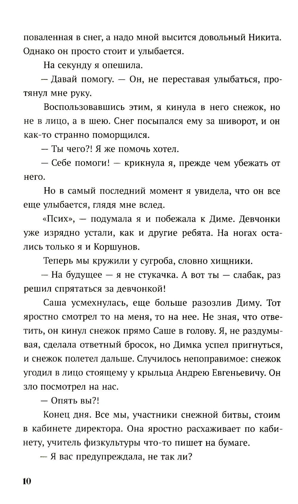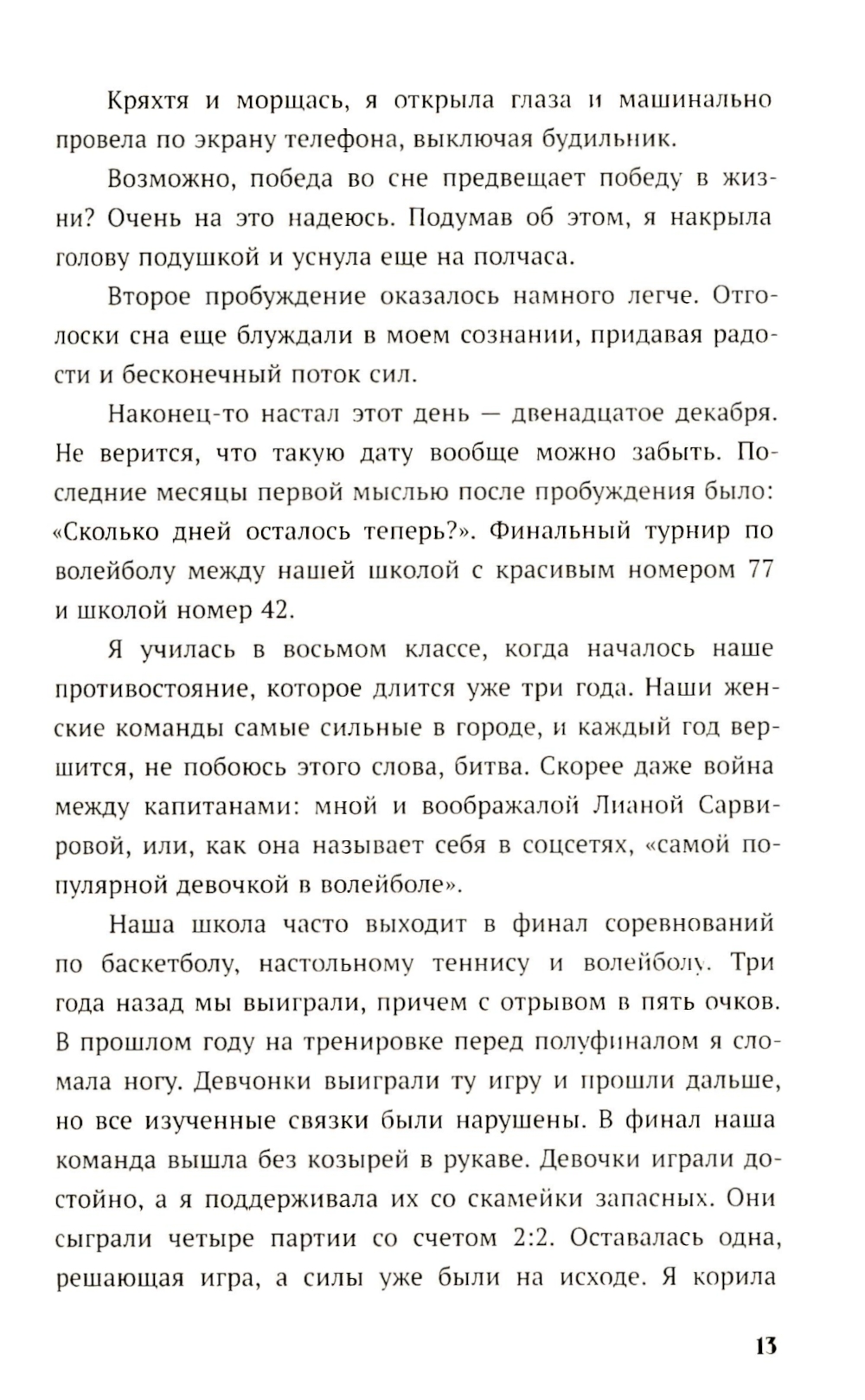Десятиклассница Диана Семенова - капитан школьной волейбольной команды. Она знает, как преодолевать трудности, чтобы добиться поставленной цели. Решающий волейбольный матч для Дианы не просто игра, а настоящая битва за честь ее школы. Однако судьба подкидывает Диане неожиданное испытание: ей придется играть в школьном спектакле вместе с Никитой Власенко, главным и непримиримым соперником. Сможет ли Диана не только победить на спортивной арене, но и открыть свое сердце для любви?| Издательство | Детская литература |