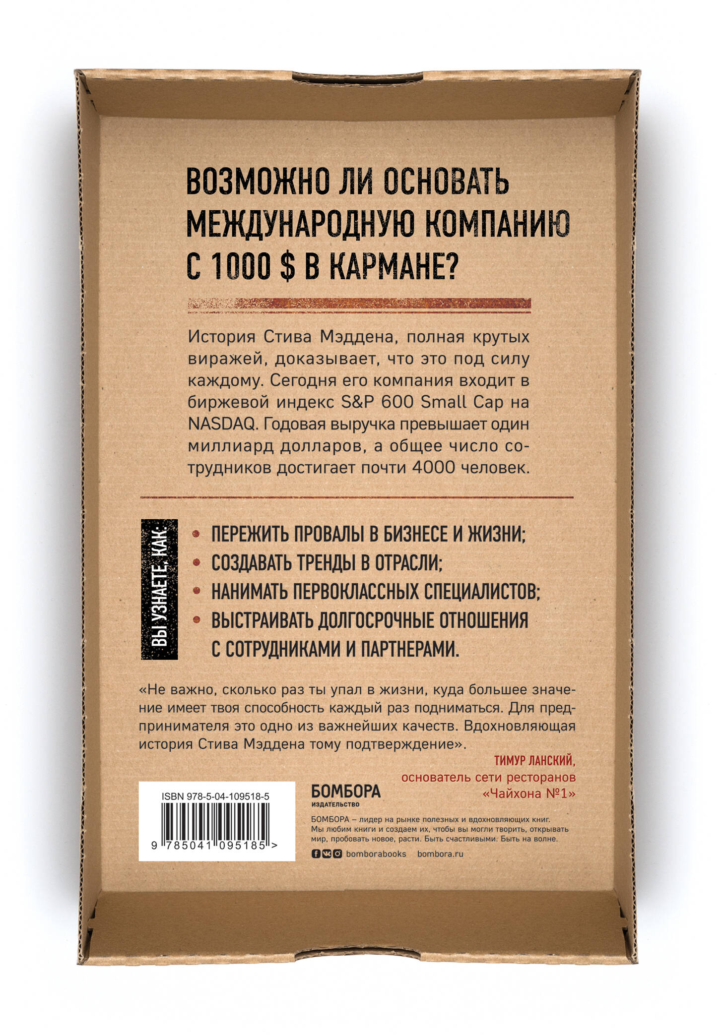 Возможно ли основать международную компанию с $1000 в кармане? История Стива Мэддена, полная крутых виражей, доказывает, что это под силу каждому. Сегодня его компания входит в биржевой индекс S&P 600 Small Cap на NASDAQ. Годовая выручка превышает один миллиард долларов, а общее число сотрудников достигает почти 4000 человек. Вы узнаете, как: • пережить провалы в бизнесе и жизни; • создавать тренды в отрасли; • нанимать первоклассных специалистов; • выстраивать долгосрочные отношения с сотрудниками и партнерами.| Издательство | ООО "Издательство "Эксмо" |