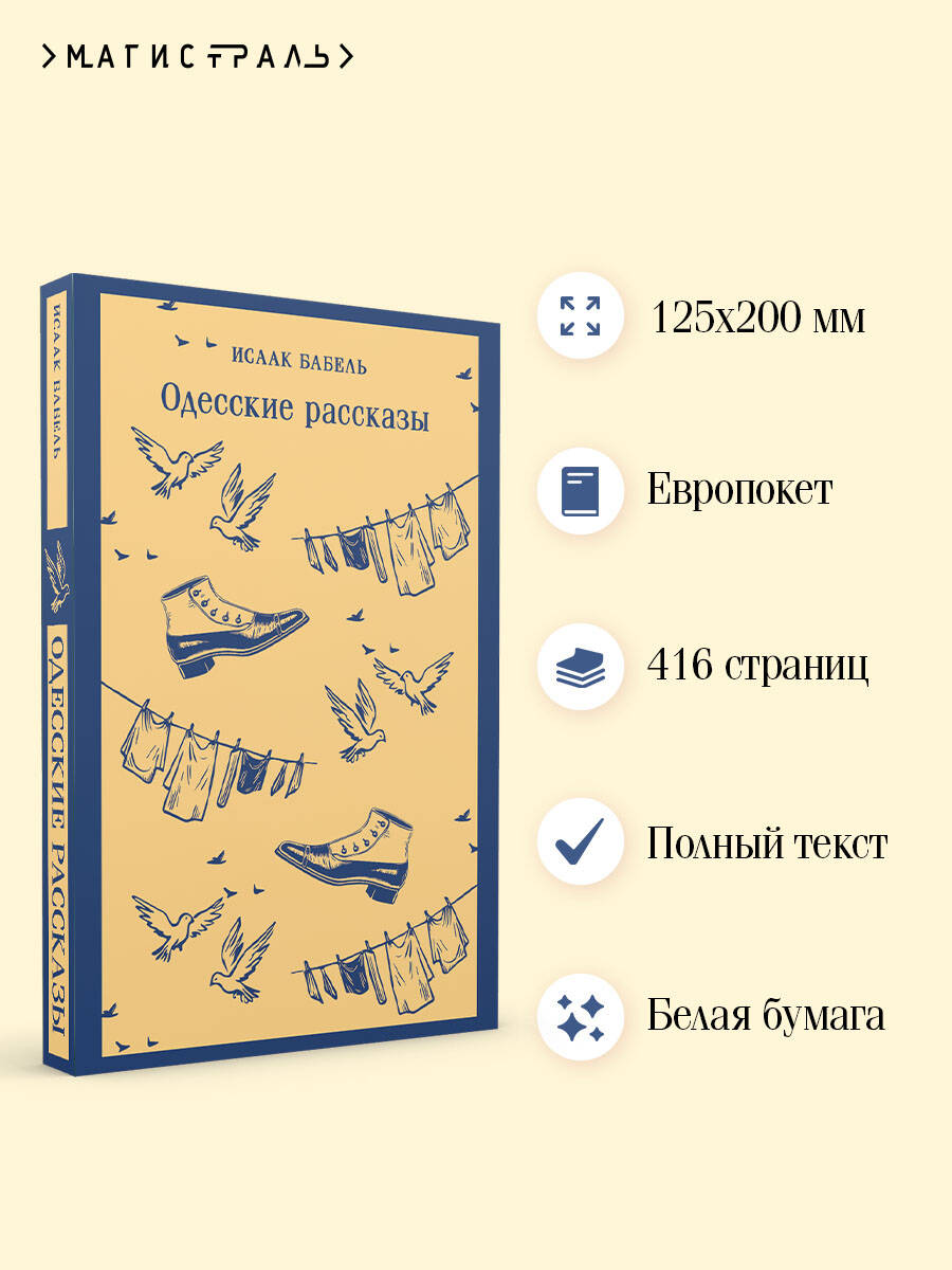 Исаак Эммануилович Бабель (1894-1940) - русский писатель, переводчик, сценарист и военный корреспондент. «Одесские рассказы» посвящены жизни одесского еврейского квартала Молдаванка начала XX века. В центре - колоритный бандитский «король» Беня Крик, прототипом которого нередко называют Мишку Япончика. Эти истории ярко передают атмосферу криминальной Одессы: контрабанду, уличные разборки и повседневный быт горожан, показанные через призму тонкого юмора и неповторимого языка. Также в сборник вошли циклы рассказов «История моей голубятни», «Великая Криница», «Петербургский дневник» и другие.| Издательство | ООО "Издательство "Эксмо" |