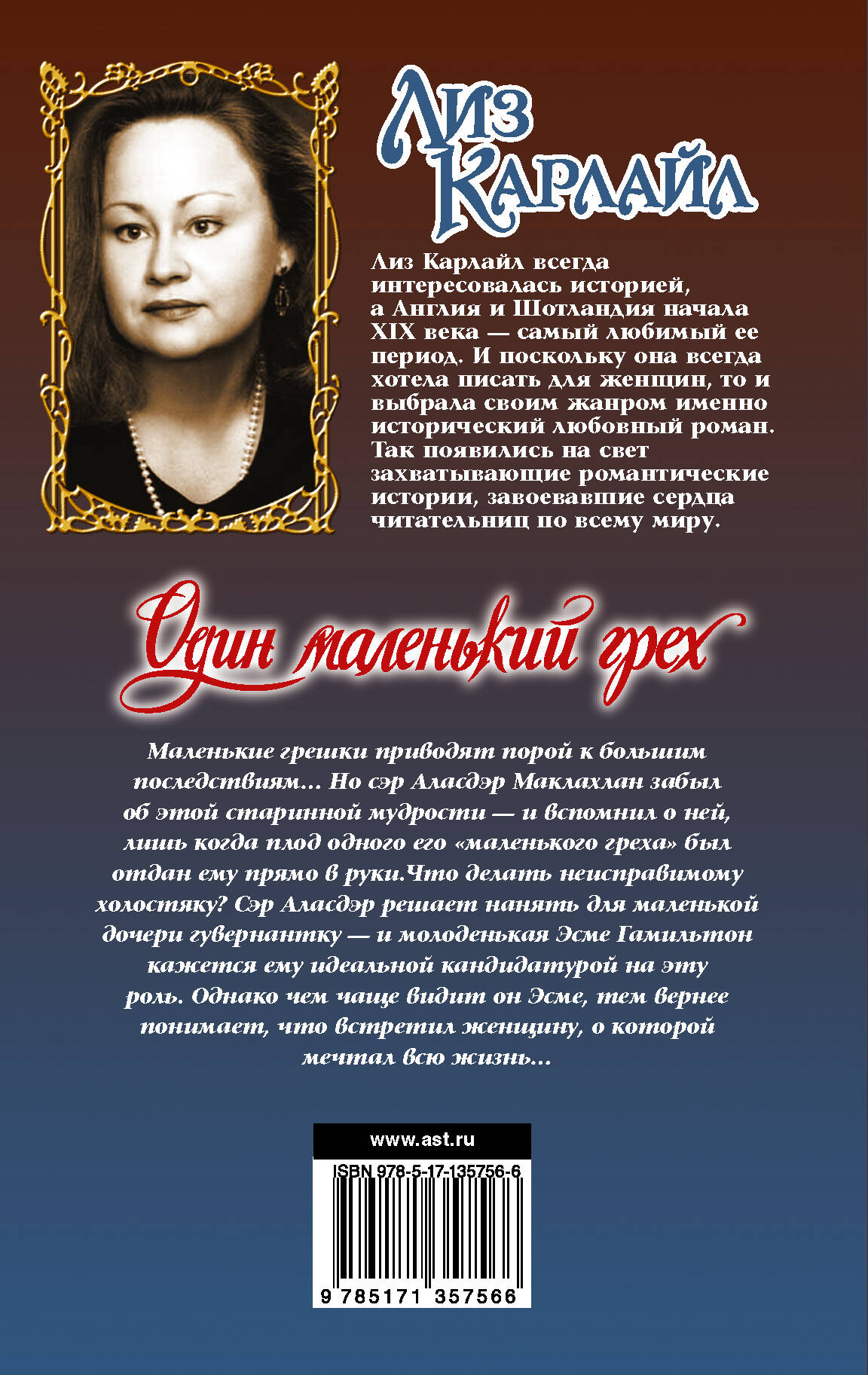 Маленькие грешки приводят порой к большим последствиям… Но сэр Аласдэр Маклахлан забыл об этой старинной мудрости - и вспомнил о ней, лишь когда плод одного его "маленького греха" был отдан ему прямо в руки.Что делать неисправимому холостяку? Сэр Аласдэр решает нанять для маленькой дочери гувернантку - и молоденькая Эсме Гамильтон кажется ему идеальной кандидатурой на эту роль. Однако чем чаще видит он Эсме, тем вернее понимает, что встретил женщину, о которой мечтал всю жизнь…| Издательство | ИЗДАТЕЛЬСТВО "АСТ" |
