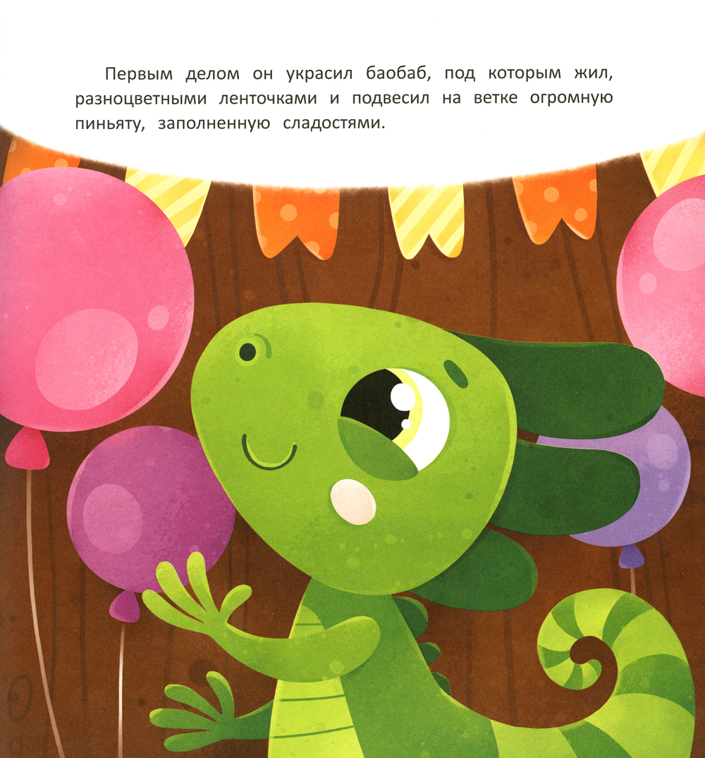 В саванне, под раскидистым баобабом, живёт хамелеон Хьюго. Каждый год он готовится к своему дню рождения и с нетерпением ждёт гостей: льва, слона, гепарда, жирафу и тётушку черепаху. В самый разгар веселья Хьюго начинает сравнивать себя со своими друзьями и понимает, что все, кроме него, обладают какими-то уникальными качествами и лишь он один самый что ни на есть обыкновенный. И только старая мудрая черепаха помогает понять Хьюго, что он тоже особенный.| Издательство | Феникс |