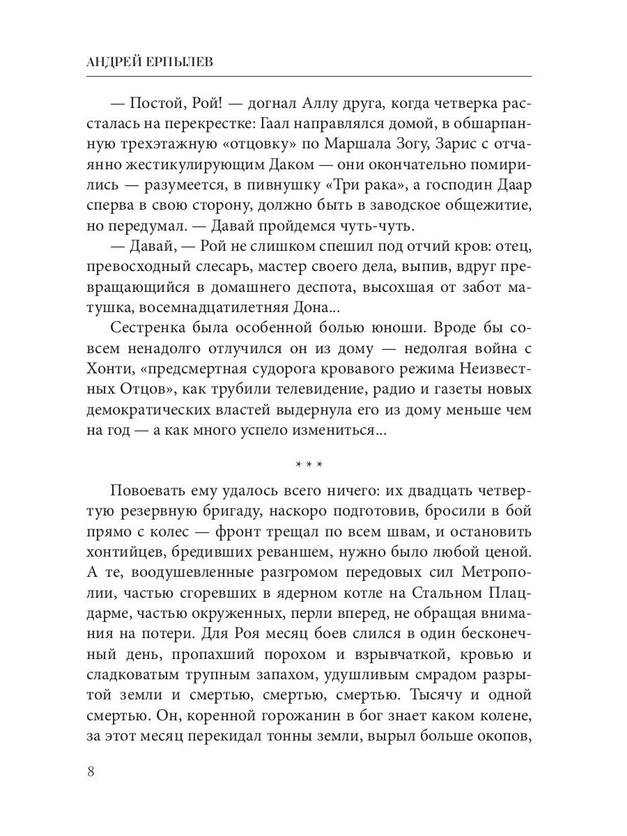 Со времени разрушения Излучателя прошло чуть менее двух лет. В то время как вчерашние «выродки», дорвавшиеся до власти, увлеченно «строят демократию», население бывшей Страны Отцов страдает от лучевого голодания, заменяя его, кто чем может - алкоголем, наркотиками, азартными играми. Экономика в глубоком кризисе, уровень инфляции и рост безработицы бьют все рекорды, один за другим закрываются промышленные гиганты. Зато все чаще на устах людей - новая элита общества, «просветленные», и загадочный святой из Табады, чудотворец по имени Мак Сим. И идет по опаленной войной стране простой парень Рой Гаал - бывший солдат, бывший заключенный, бывший беглец. Волею судеб - невольный спаситель потомка и наследника свергнутого Императора Эррана Последнего. Единственный человек, способный помешать насильственному «просветлению» всего Саракша...| Издательство | Т8 RUGRAM |