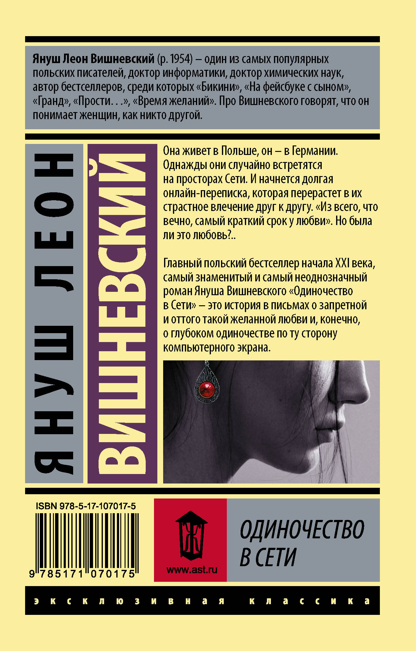 Она живет в Польше, он - в Германии. Однажды они случайно встретятся на просторах Сети. И начнется долгая онлайн-переписка, которая перерастет в их страстное влечение друг к другу. "Из всего, что вечно, самый краткий срок у любви". Но была ли это любовь?.. Главный польский бестселлер начала XXI века, самый знаменитый и самый неоднозначный роман Януша Вишневского "Одиночество в Сети" - это история в письмах о запретной и оттого такой желанной любви и, конечно, о глубоком одиночестве по ту сторону компьютерного экрана.