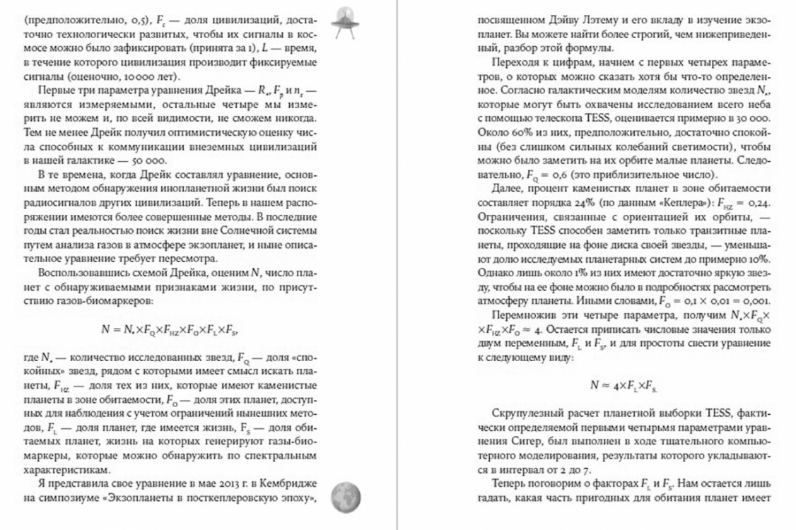 «Во второй половине XX в. астрономы всерьез задумались о возможности обнаружения сигналов из космоса с помощью технической новинки - радио- телескопов. Начало поиску внеземного разума положил первопроходец в этой области Фрэнк Дрейк. Возможно, самым знаменитым его достижением является наглядная формула - уравнение Дрейка, которое включает все факторы, необходимые, по его мнению, для оценки вероятности существования где-либо во Вселенной разумной жизни».