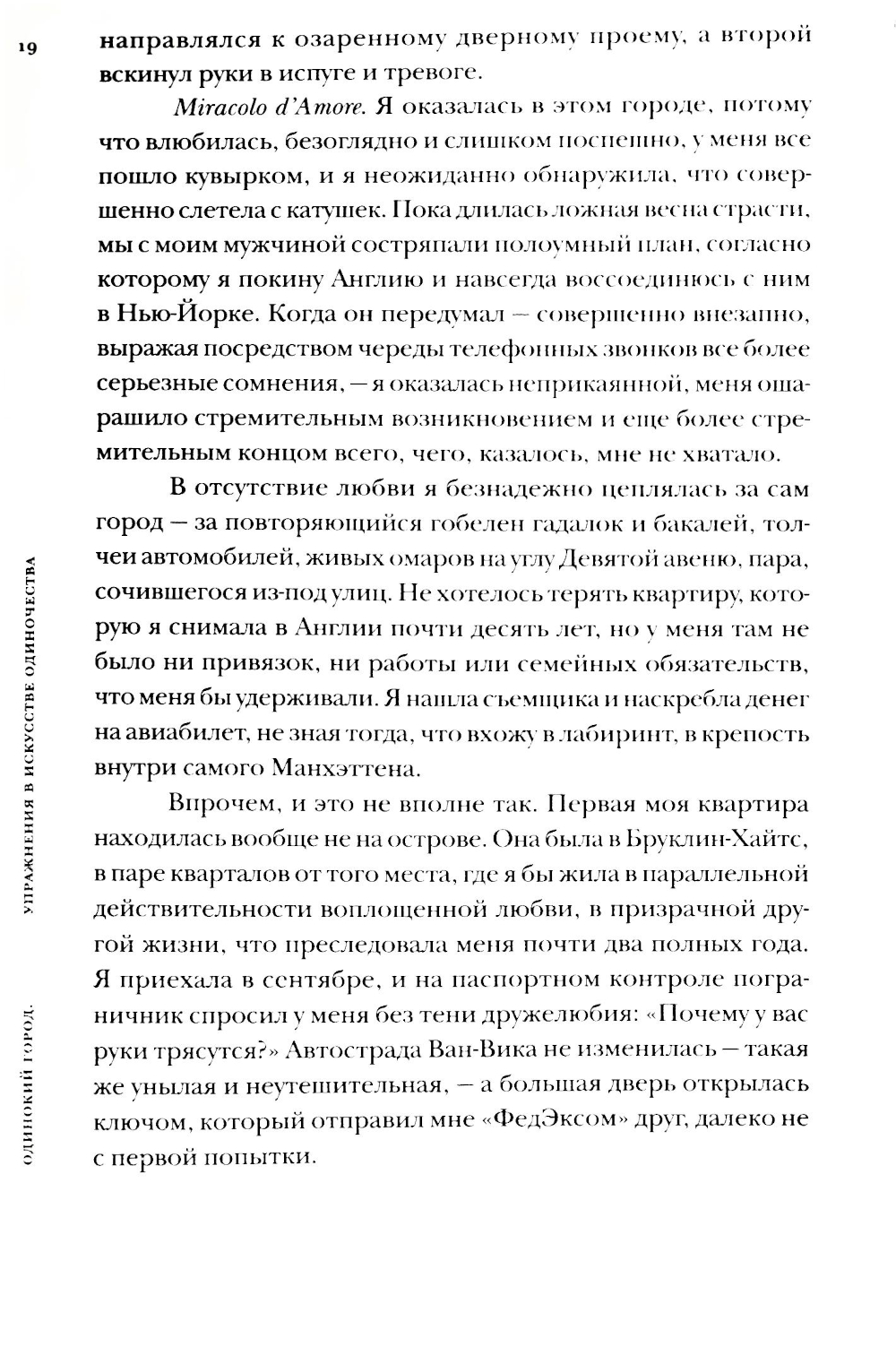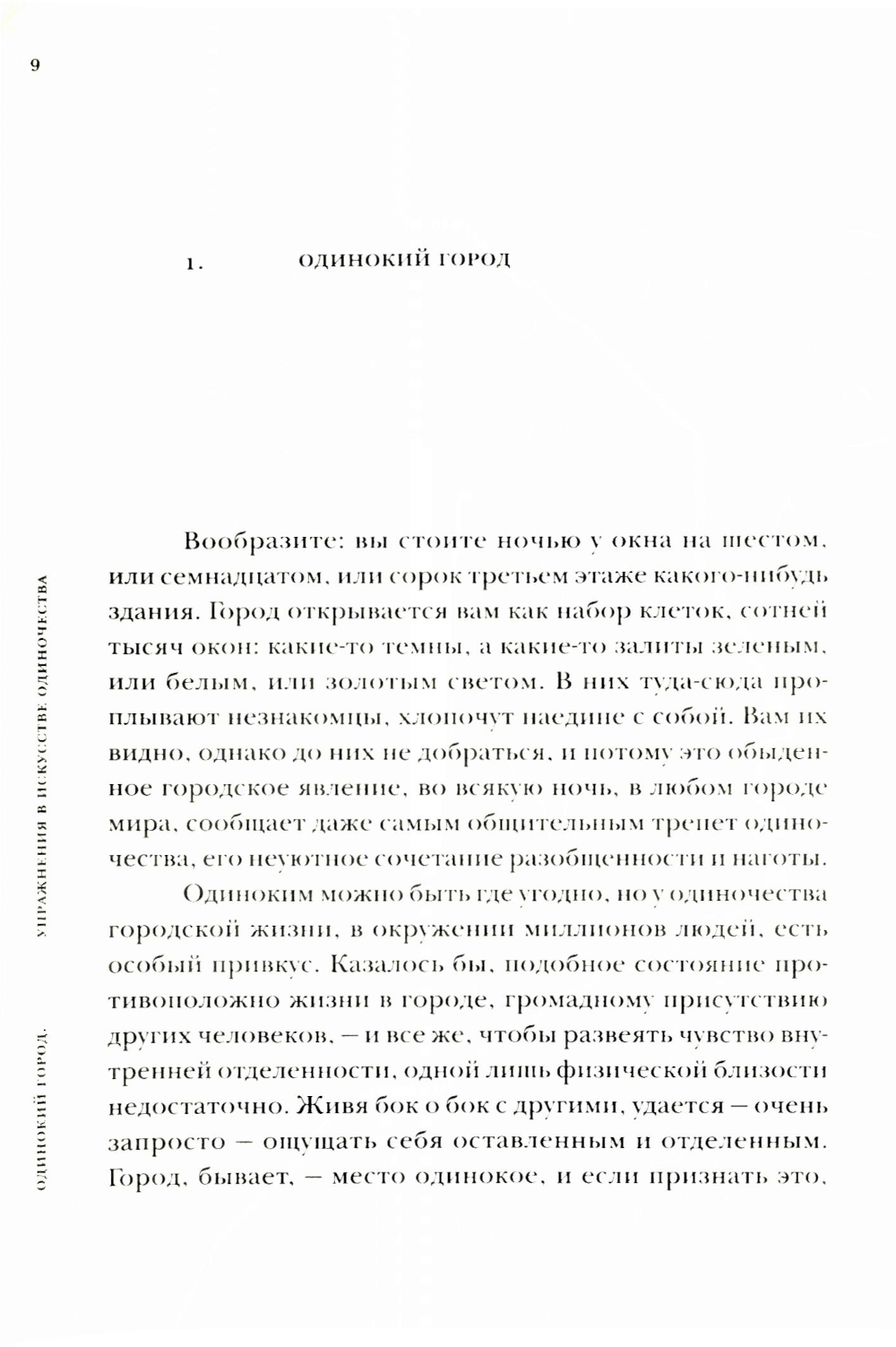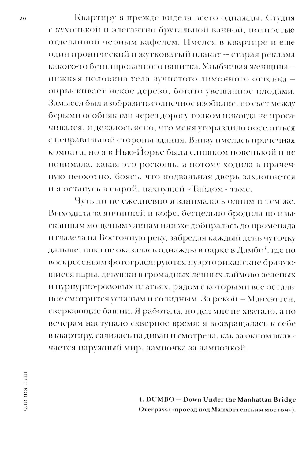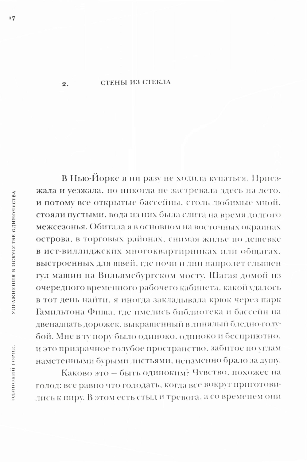 В тридцать с лишним лет переехав в Нью-Йорк по причине романтических отношений, Оливия Лэнг в итоге оказалась одна в огромном чужом городе. Этот наипостыднейший жизненный опыт завораживал ее все сильнее, и она принялась исследовать одинокий город через искусство. Разбирая случаи Эдварда Хоппера, Энди Уорхола, Клауса Номи, Генри Дарджера и Дэвида Войнаровича, прославленная эссеистка и критик изучает упражнения в искусстве одиночества, разбирает его образы и социально-психологическую природу отчуждения. Человечный, дерзкий и глубоко проникновенный «Одинокий город» - книга о пространствах между людьми, о вещах, которые соединяют людей, о сексуальности, нравственности и чудодейственных возможностях искусства. Это исследование неведомого и чарующего состояния, оторванного от обширного материка человеческого жизненного опыта, но глубинно присущего жизни как таковой.