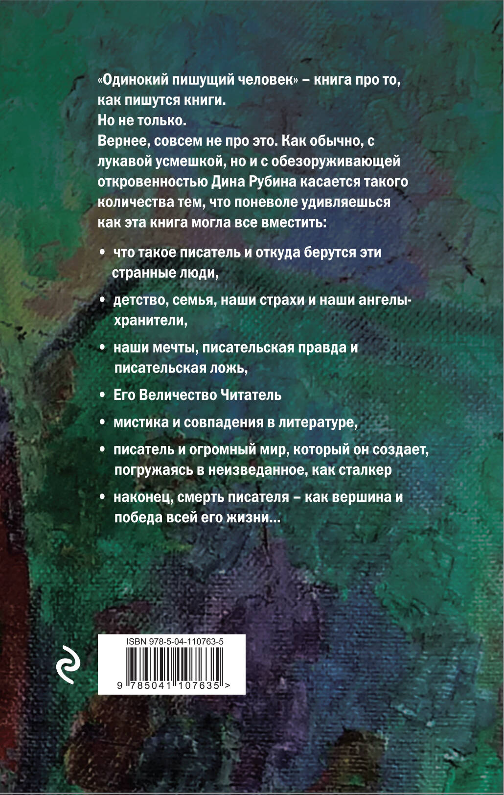 Новую книгу Дины Рубиной «Одинокий пишущий человек» необходимо покупать, потому что: 1. Это совершенно не похожий на все предыдущие книги Дины Рубиной проект - роман о писателе, пишущем романы. 2. Это откровенная книга о том, как пишутся книги. 3. Это шокирующие признания писателя о самом себе, своей семье, судьбе, времени. 4. Это самая авторитетная книга о писательском мастерстве, потому что создана самым успешным автором современной прозы. 5. Это книга от юбиляра, чьё 50-летие творческой деятельности будет отмечаться в России с размахом.| Издательство | ООО "Издательство "Эксмо" |