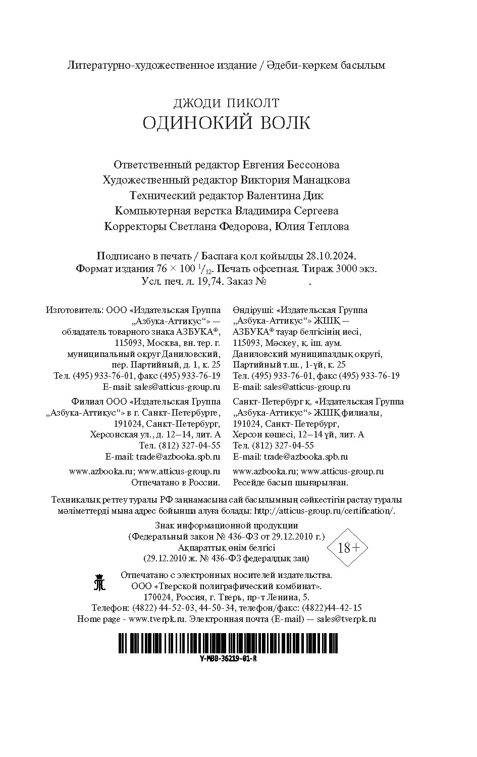Люк Уоррен посвятил жизнь изучению волков. Он писал о них, изучал их привычки и даже два года прожил в волчьей стае. Во многих смыслах он разбирается в поведении волков лучше, чем в отношениях внутри собственной семьи. В конце концов жена разводится с ним, а восемнадцатилетний сын Эдвард после жуткой ссоры с отцом уезжает из страны. Но все меняется, когда приходит известие, что Люк тяжело пострадал в автомобильной аварии и его жизнь висит на волоске. Эдвард возвращается домой. Им с младшей сестрой Карой придется вместе решать судьбу отца и ответить на множество вопросов. Какие тайны хранили друг от друга брат и сестра? Какие скрытые мотивы побуждают их позволить отцу умереть... или попытаться сохранить ему жизнь? Чего бы хотел сам Люк? Как члены семьи могут принять такое решение под давлением вины, или горя, или того и другого вместе? И что наиболее важно, насколько они забыли непреложное правило волчьей стаи: все ее члены нуждаются друг в друге, а выживание порой требует жертв. «Одинокий волк» - это незабываемая история о семейных тайнах, любви и расставании.| Издательство | Азбука |