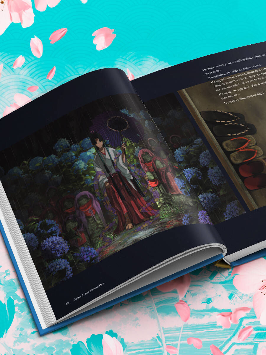 Откройте эту книгу, загляните под обложку и… перенесетесь в таинственный мир традиционной японской мифологии. Вместе с этим артбуком вы затеряетесь в глубине японского леса с таинственными существами, населяющими этот мир: божествами и демонами, ёкаями и юрэями, полулюдьми-полуживотными… Но не это главное: перед вам развернется целая история, трогательная, иногда жуткая, но неизменно щемяще-светлая. В ней говорится о добре и зле, о ценности дружбы и товарищества, о жестокости и возможности искупления. А во второй части артбука у вас будет возможность и заглянуть за кулисы, в творческую мастерскую японского иллюстратора Tsukku: узнать, как создавалась эта история, из каких именно мифов автор черпал вдохновение, а также познакомиться с полюбившимися персонажами поближе.
