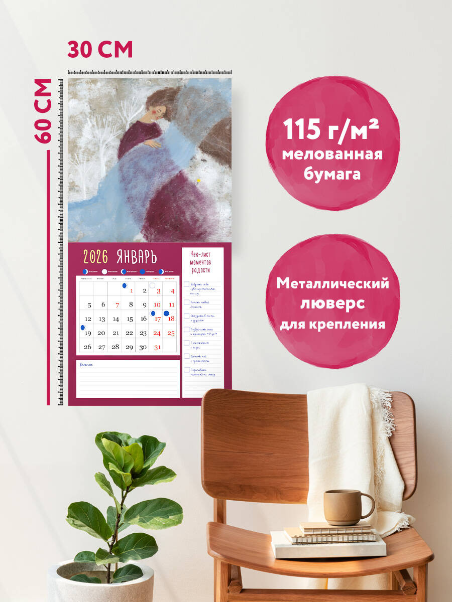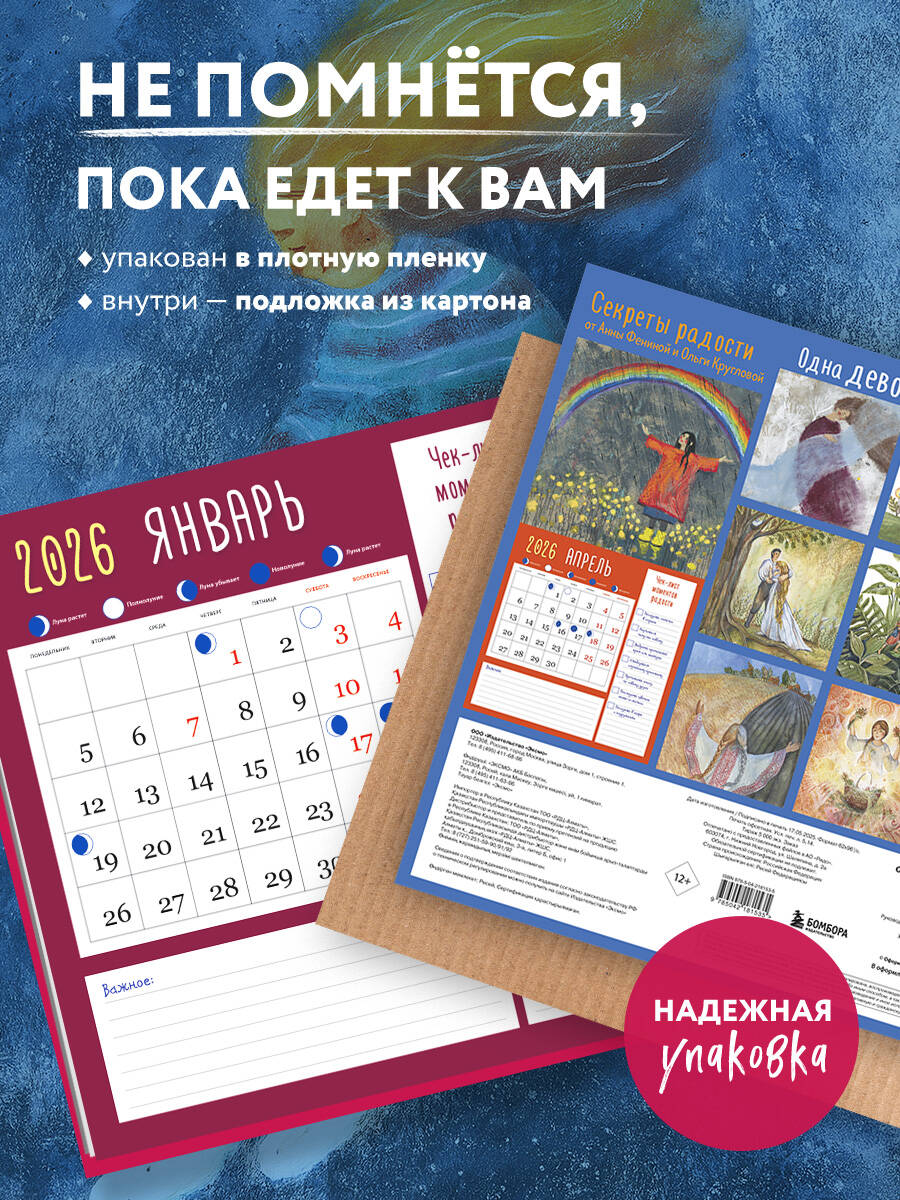 О календаре: Одна Девочка собирает свое счастье из маленьких радостей, на которые всегда находит время. Каждый год у нее новые рецепты счастливых моментов. Следуй им и получишь неиссякаемый внутренний ресурс. В уютном календаре от Анны Фениной - автора бестселлеров целебных сказок про Одну Девочку - для каждого месяца есть чек-листы приятных и волнующих занятий. Следуй списку или вписывай свои идеи, отмечай сделанное галочкой (или сердечком) - и почувствуешь, что от хандры не осталось и следа. В календарной сетке специально для твоего удобства мы отметили новолуния и полнолуния, чтобы ты могла сверить свое расписание с космическим. И выбрать для «сбора счастья» самые лучшие дни. Календарь украшен волшебными иллюстрациями Ольги Кругловой, которые согреют и поддержат тебя в любой ситуации. О серии: Наши настенные календари отличаются высоким качеством исполнения! Тщательно подобранные иллюстрации, напечатанные на глянцевой бумаге высочайшего качества, станут настоящим украшением дома, а в календарной сетке найдется место для ваших планов: большие клетки позволят делать записи и организовать свой год! В календаре также отмечены все государственные праздники. В серии настенных календарей издательства «ЭКСМО» каждый найдет тему по вкусу: великие художники, великолепные подборки с самыми знаменитыми произведениями искусства, легендарные кинематографические саги и игры, главные книжные авторы и бестселлеры, фотографии и иллюстрации любимых животных и многое-многое другое! Технические параметры: - Тип календаря - настенный перекидной. - Год - 2026. - Календарная сетка - с разбивкой по месяцам. - Вид скрепления - скрепка. - Ширина - 30 см. - Высота - 30 см. - Внутренний блок - мелованная бумага 115 г/м2. - Подложка - плотный гофрокартон для поддержания формы. - Индивидуальная упаковка в плотный целлофановый пакет.| Издательство | ООО "Издательство "Эксмо" |