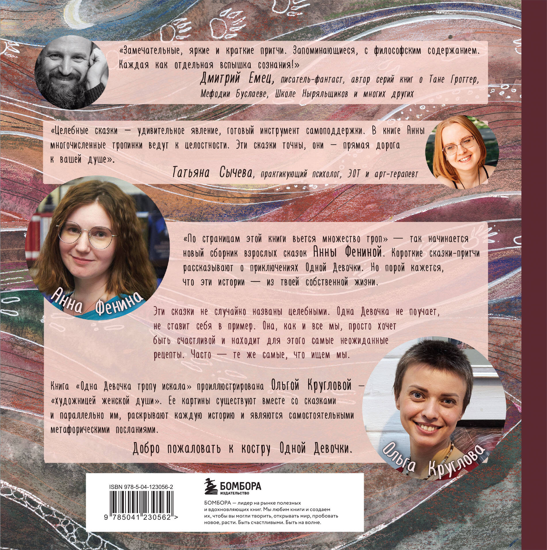 Сказки Одной Девочки - как воздушный поцелуй или капли грибного дождика - невесомы и полны света. И это не удивительно. Ведь их автор - рекордсмен краудфандинговой платформы Boomstarter Анна Фенина - живет на опушке леса, у самого сердца природы. Говорят, что сказки она печатает на старой пишущей машинке, оставшейся от дедушки-писателя. В ее доме частенько живут дикие птицы, попавшие в беду. А на столе переливаются яркие нити самоцветов, из которых Анна плетет то ли фантастические украшения, то ли свои истории, а то ли чьи-то счастливые судьбы. ⠀ А еще сказки, собранные в этой книге, обладают особыми целебными свойствами. Смена масштаба и точки зрения, точные метафоры и обращение к маленькой девочке, которая плачет и смеется в каждой из нас, воздействуют на читателя мягко и точно. А тонкие и насыщенные множеством смыслов иллюстрации Ольги Кругловой придают книге вполне космический масштаб, если надо пробудить уверенность в себе и ощутить себя центром Вселенной. И, наоборот, дарят уют, камерность и теплоту, если хочется свернуться клубочком, отдохнуть и отпустить все проблемы. «Никто не ведает, где родилась Одна Девочка и где она живет. Да только приходит она ровно тогда, когда нужна: садится рядом, обнимает и целует тебя в самую душу...» «Анна Фенина - автор очень искренний. Ей удается создавать замечательные, яркие и краткие притчи. В малый объем вкладывать большое философское содержание. Это очень редкая способность. Отточена ли она интернетом, или была у Анны изначально - сказать трудно. Но это и не важно. Важно, что читательский ритм все ускоряется и ускоряется. Читатель хочет получить много, емко и сразу. За пять минут услышать то, на выражение чего раньше литература тратила тысячи слов и десятки тысяч букв. И Анна частенько даже опережает читателя на этом пути, то есть дает не воду, а концентрированное сгущенное молоко. Для понимающего человека это очень лакомый продукт. Каждая сказка-притча запоминается, каждая - как отдельная вспышка сознания». - Дмитрий Емец, российский писатель-фантаст Для особых поклонников книг Анны Фениной и Ольги Кругловой - календари: «Одна девочка собирала счастье» и «Я - женщина» на 2022 год. И экологичный «Дневник одной девочки» в оформлении «Лиса» и «Стая» для хранения ароматных веточек, ярких идей и вольных мыслей.| Издательство | ООО "Издательство "Эксмо" |