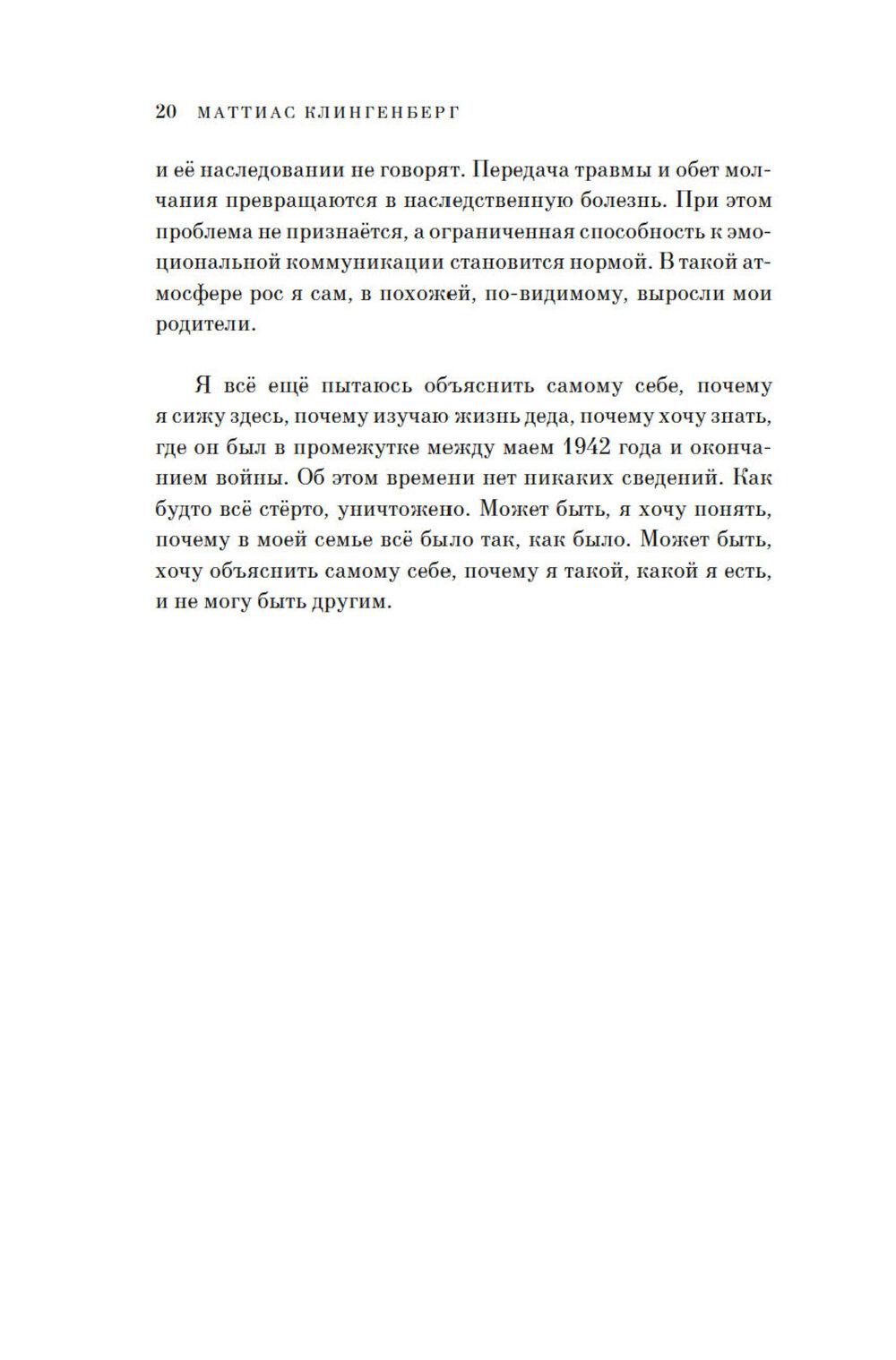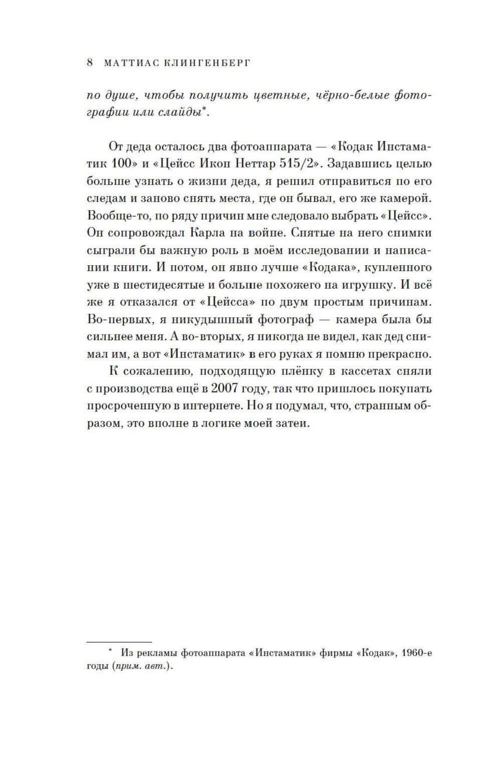 Еще маленьким мальчиком, автор хотел знать, какую роль сыграл его дед Карл, солдат Вермахта во Второй мировой войне. Иногда дед позволяет себе рассказать тот или иной эпизод своей военной биографии. Скупые рассказы полны очарования и ужаса. Спустя семьдесят лет после окончания войны, автор отправляется в путешествие по местам, где когда-то жил его солдат-дед. Он узнает совсем немного нового о дедушке, и гораздо больше о себе и своей семье. Места, люди, встречи, исторические реликвии говорят сами за себя и за целые послевоенные поколения, где бы не происходили события: в Украине, Франции, Польше, Чехии, Западной или Восточной Германии.| Издательство | КоЛибри |