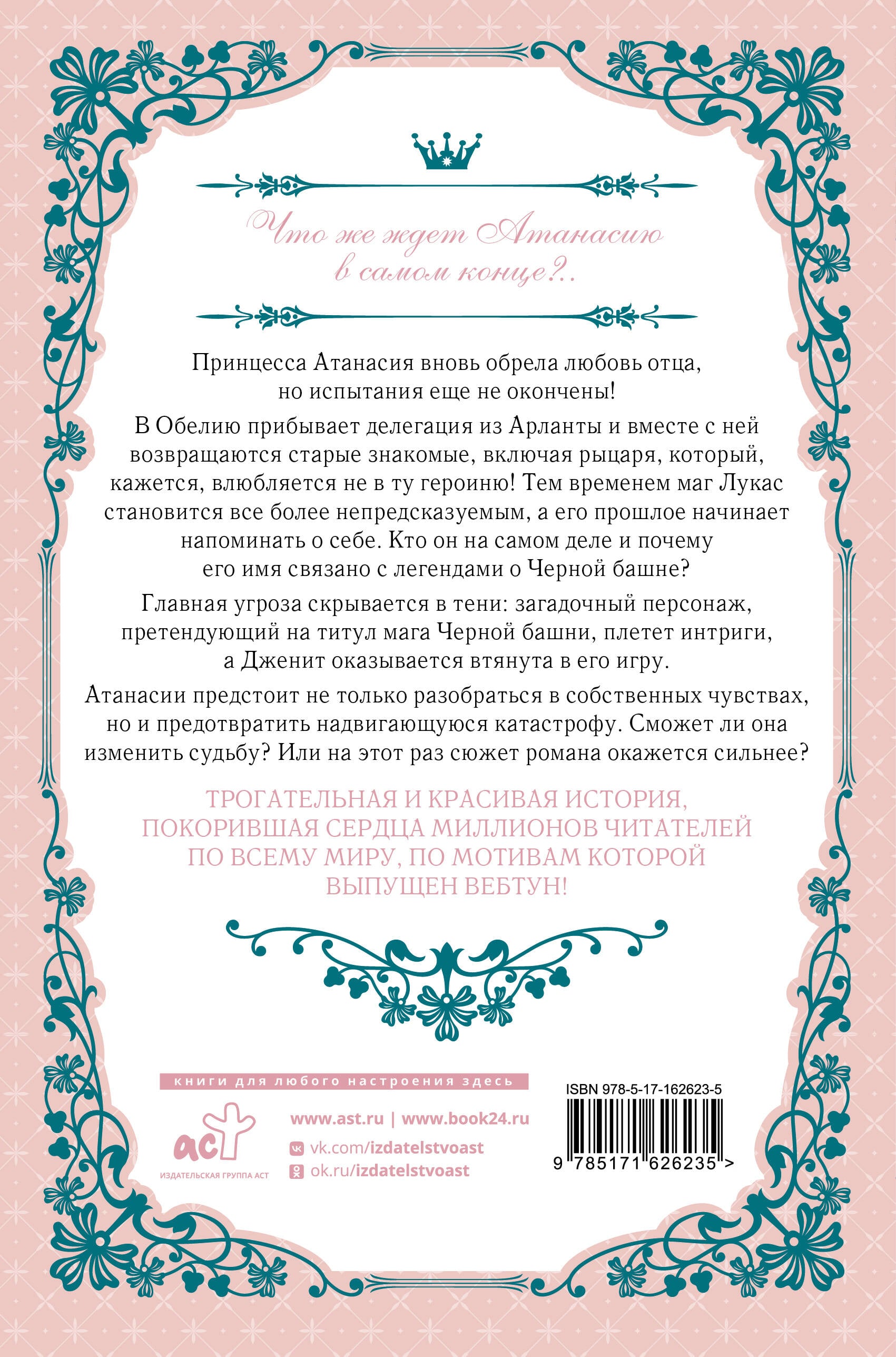 Принцесса Атанасия вновь обрела любовь отца, но испытания еще не окончены! В Обелию прибывает делегация из Арланты, и вместе с ней возвращаются старые знакомые, включая рыцаря, который, кажется, влюбляется не в ту героиню! Тем временем маг Лукас становится все более непредсказуемым, а его прошлое начинает напоминать о себе. Кто он на самом деле и почему его имя связано с легендами о Черной башне? Главная угроза скрывается в тени: загадочный персонаж, претендующий на титул мага Черной башни, плетет интриги, а Дженит оказывается втянута в его игру. Атанасии предстоит не только разобраться в собственных чувствах, но и предотвратить надвигающуюся катастрофу. Сможет ли она изменить судьбу? Или на этот раз сюжет романа окажется сильнее?| Издательство | Издательство "АСТ" |