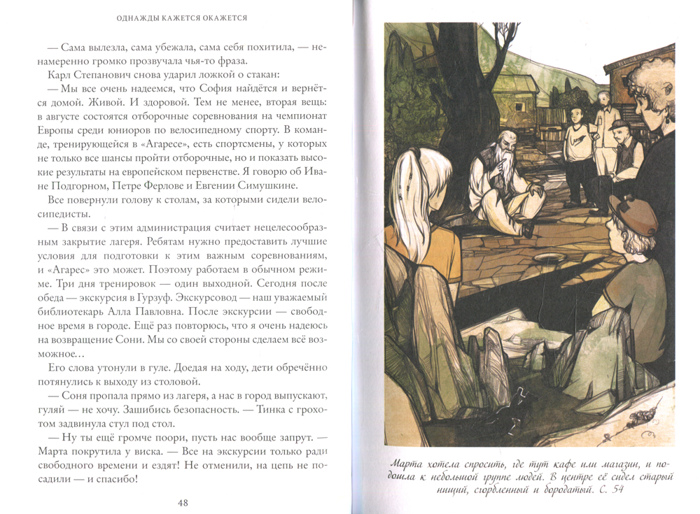 Крым. Тёплое летнее море, знойный воздух с ароматом хвои и йода, двухдневные походы, обязательные тренировки и время для себя, дискотеки и страшилки перед сном - обычный набор обычного детского спортивного лагеря. В одну из ночей из палаты уходит на спор и не возвращается Соня Гамаюнова, и с этого исчезновения начинается цепочка загадочных происшествий. В лагере происходят странные события, оживают старинные сказки и легенды, а Марта Веснова заводит знакомство с самым настоящим ифритом - духом огня. «Однажды кажется окажется» - завораживающая мистическая повесть. Её персонажам: обыкновенным детям и взрослым, мудрым ведьмам, духам четырёх стихий и обитателям мира по ту сторону - предстоит столкнуться с древним злом. Никогда ещё летние приключения не были такими магическими и опасными! Продолжение следует...| Издательство | Абрикобукс |
