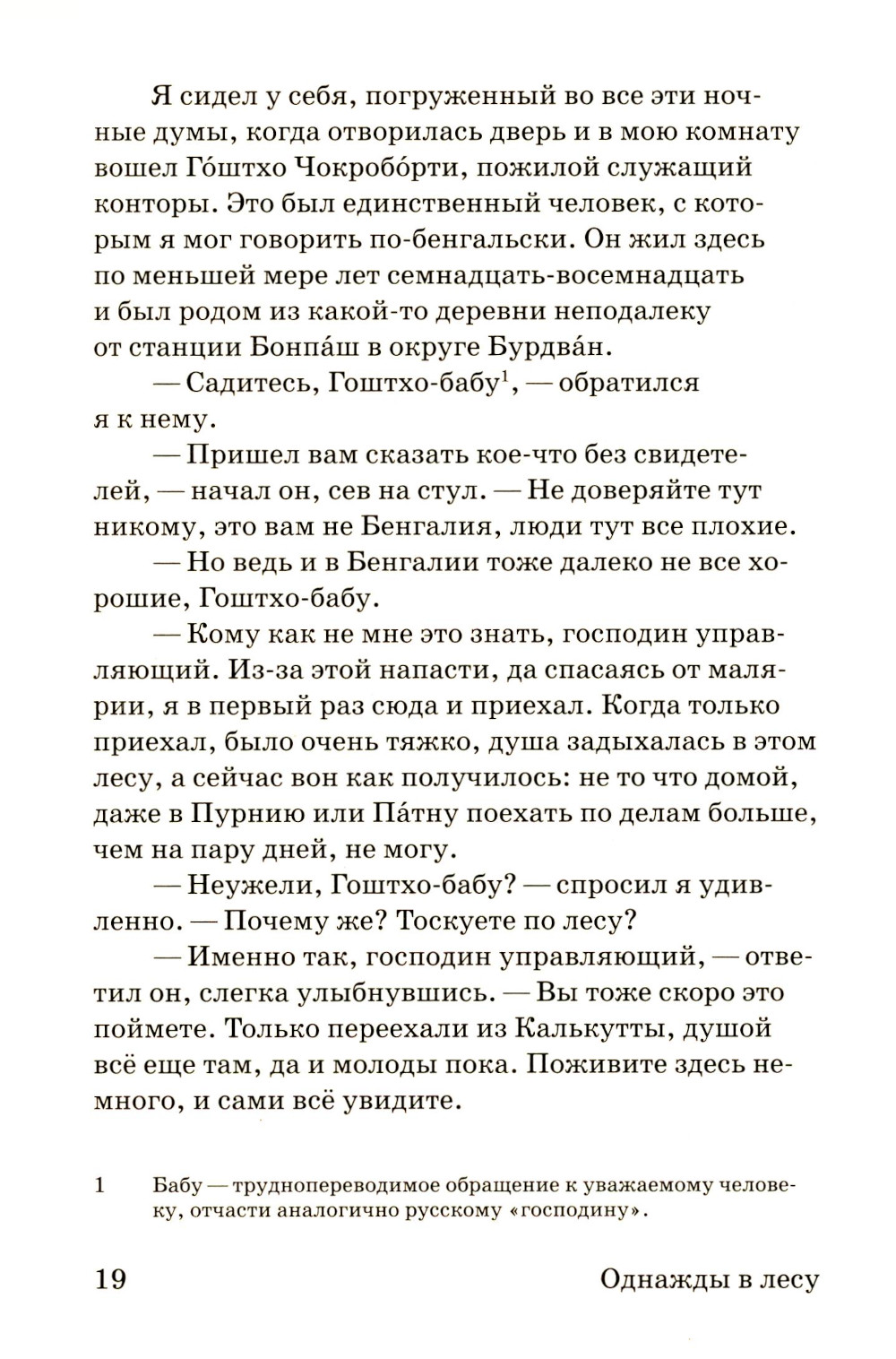 «Однажды в лесу» - полуавтобиографический роман бенгальского классика Бибхутибхушона Бондопаддхая (1894-1950). Он рассказывает историю юноши Шотточорона из Калькутты, который не может найти работу и уезжает в соседний штат Бихар, где становится управляющим большим лесным участком. Чем сильнее Шотточорон очаровывается красотой здешнего леса, тем больше он тяготится тем, что обязан расчистить эту землю для обработки. Лес в романе - не просто место действия основных событий, но центральный персонаж, деятельный и многоликий, могущественный и грозный, наделенный властью над людьми и подчиняющий себе их волю. На русском языке «Однажды в лесу» публикуется впервые.| Издательство | Ад Маргинем Пресс |