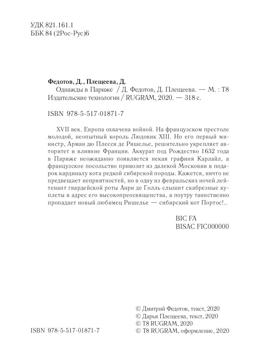 XVII век. Европа охвачена войной. На французском престоле молодой, неопытный король Людовик XIII. Но его первый министр, Арман дю Плесси де Ришелье, решительно укрепляет авторитет и влияние Франции. Аккурат под Рождество 1632 года в Париже неожиданно появляется некая графиня Карлайл, а французское посольство привозит из далекой Московии в подарок кардиналу кота редкой сибирской породы. Кажется, ничто не предвещает неприятностей, но в одну из февральских ночей лейтенант гвардейской роты Анри де Голль слышит скабрезные куплеты в адрес его высокопреосвященства, а поутру таинственно пропадает новый любимец Ришелье - сибирский кот Портос!..| Издательство | Т8 RUGRAM |