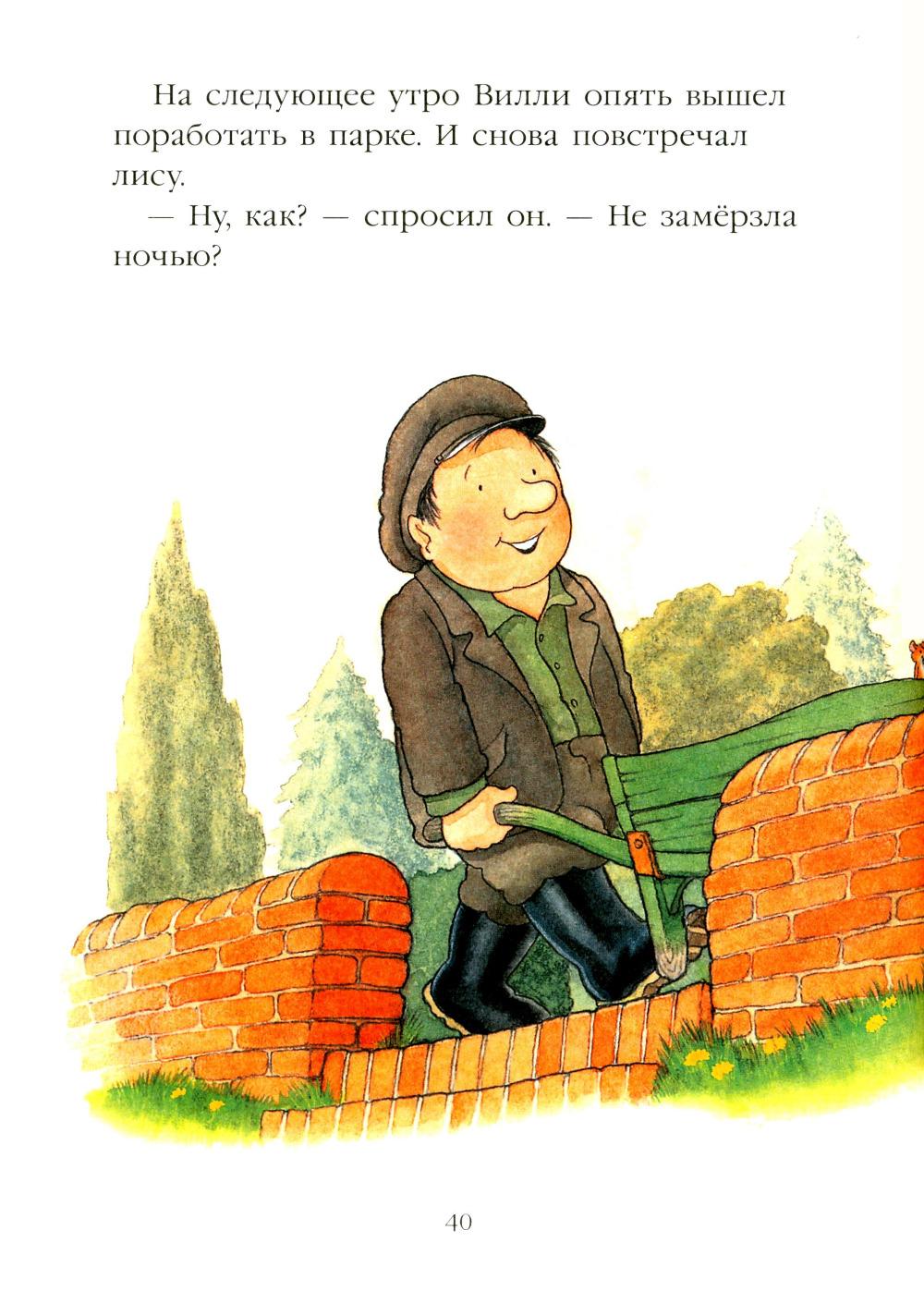 Дядя Вилли работает сторожем в старом парке. Он и за деревьями ухаживает, и цветы сажает, и дорожки подметает, и за порядком следит. И конечно, дружит со всеми зверушками и птицами, живущими в парке: с лисой, барсуком, совой, ёжиком, белкой, зайцами и мышками. Если кому-то из них требуется помощь, дядя Вилли тут же бросает все свои дела и спешит на выручку. Рассказы о стороже Вилли - это забавные и добрые сказочные истории, созданные в лучших традициях английской детской литературы. Их сюжеты и юмор понятны даже самым маленьким читателям, и они будут просить перечитывать их снова и снова. На каждой странице есть иллюстрации, которые захочется подолгу рассматривать, отыскивая новые детали. И наконец, каждая история не только смешная, но и поучительная, так что родителям будет что обсудить с ребёнком после прочтения. Рассказы о парковом стороже Вилли и его друзьях издаются во всём мире вот уже более 30 лет. За это время они стали настоящей классикой детской литературы, были переведены на 16 языков.| Издательство | Мелик-Пашаев |