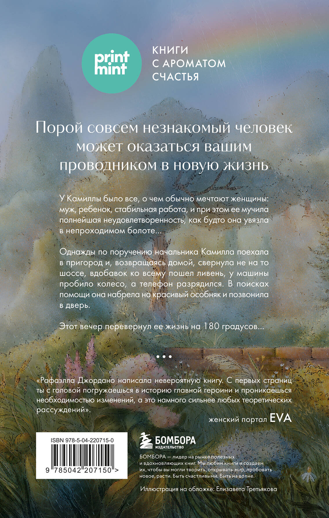 ПЕРЕВЕДЕНО НА 30 ЯЗЫКОВ. ПРОДАНО БОЛЕЕ 2 МЛН ЭКЗЕМПЛЯРОВ. Порой совсем незнакомый человек может оказаться вашим проводником в новую жизнь. У Камиллы было все, о чем обычно мечтают женщины: муж, ребенок, стабильная работа, и при этом ее мучила полнейшая неудовлетворенность, как будто она увязла в непроходимом болоте... Однажды, по поручению начальника, Камилла поехала в пригород и, возвращаясь домой, свернула не на то шоссе, вдобавок ко всему пошел ливень, у машины пробило колесо, а телефон разрядился. В поисках помощи она набрела на красивый особняк и позвонила в дверь. Этот вечер перевернул ее жизнь на 180 градусов. «Рафаэлла Джордано написала невероятную книгу. С первых страниц с головой погружаешься в историю главной героини и проникаешься необходимостью изменений, а это намного сильнее любых теоретических рассуждений». - Женский портал Eva Книга выходила ранее под названием «Твоя вторая жизнь, или Книга о счастье».| Издательство | ООО "Издательство "Эксмо" |