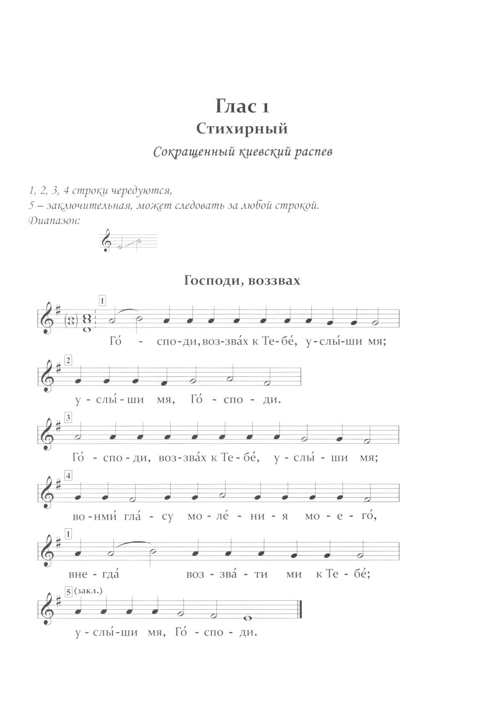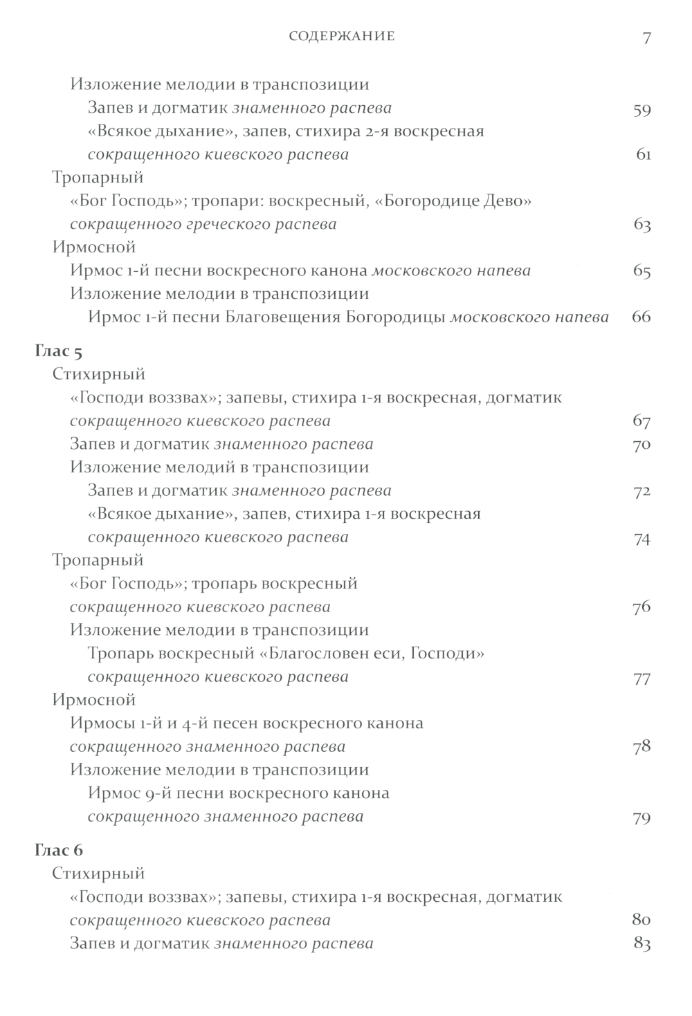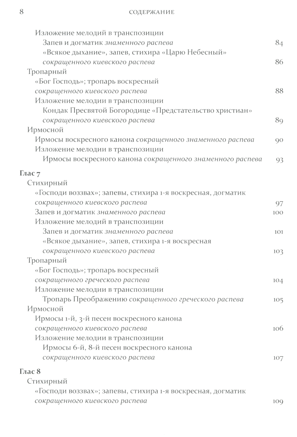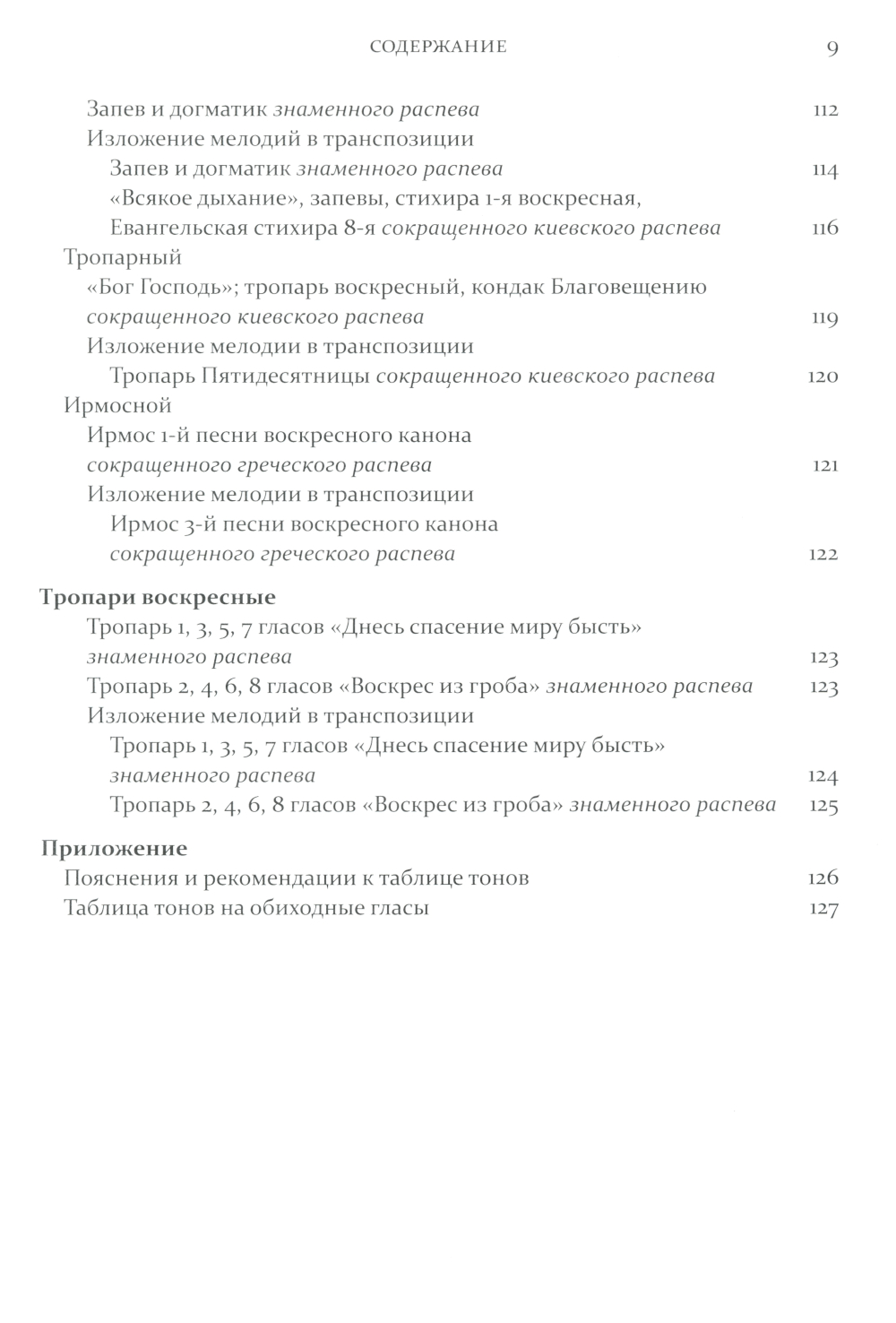Нотный сборник содержит образцы обиходных распевов осмогласия таких гимнографических жанров, как стихира, тропарь и ирмос, и отражает современную практику их исполнения в Московской духовной академии и Троице-Сергиевой лавре. В приложении помещена универсальная таблица тонов на все обиходные гласовые мелодии с пояснениями.| Издательство | Московская духовная академия |