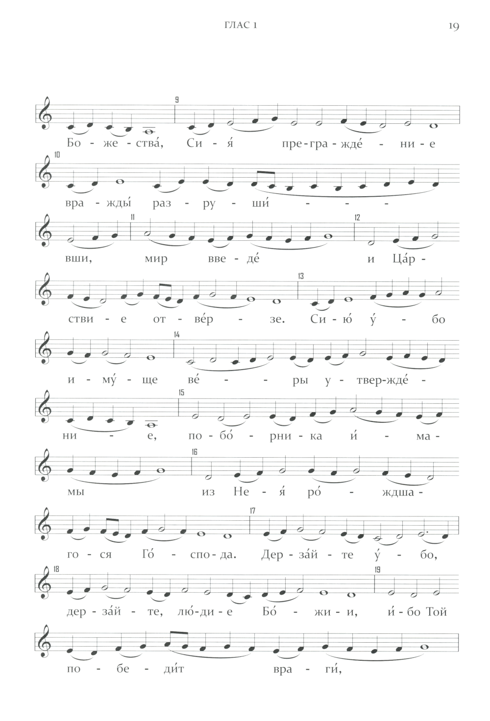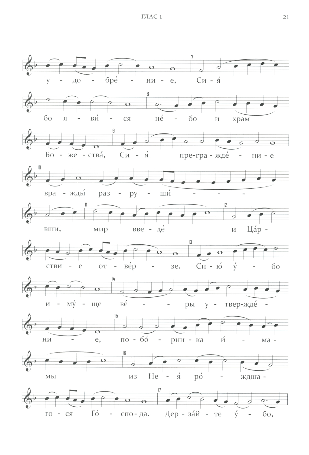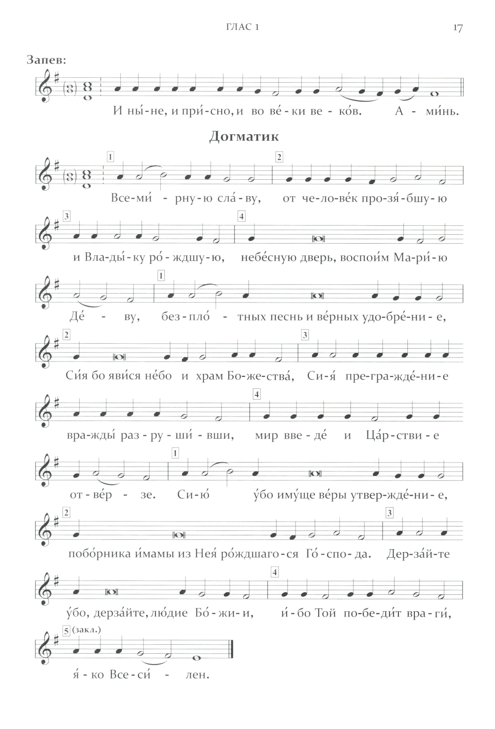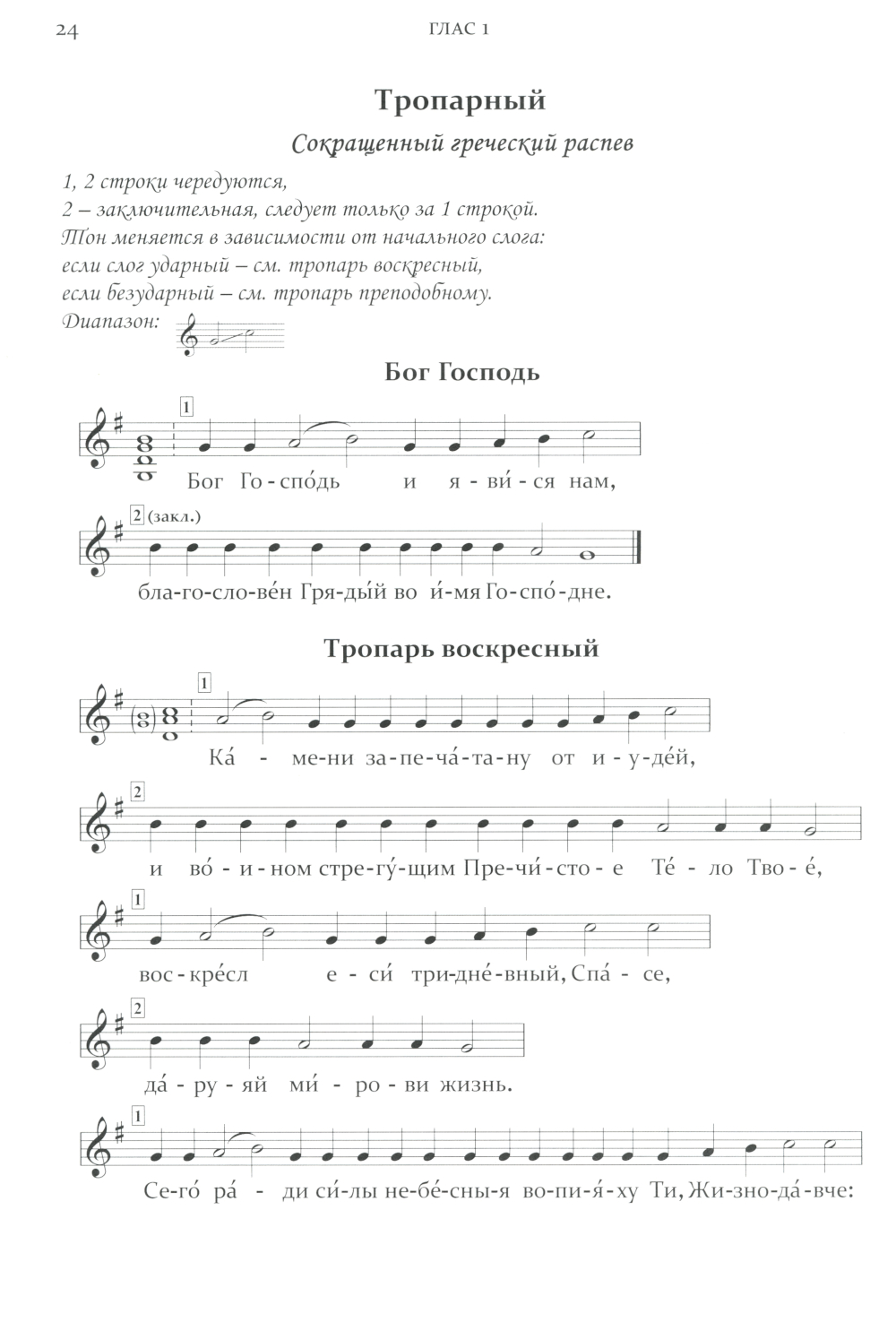 Нотный сборник содержит образцы обиходных распевов осмогласия таких гимнографических жанров, как стихира, тропарь и ирмос, и отражает современную практику их исполнения в Московской духовной академии и Троице-Сергиевой лавре. В приложении помещена универсальная таблица тонов на все обиходные гласовые мелодии с пояснениями.| Издательство | Московская духовная академия |