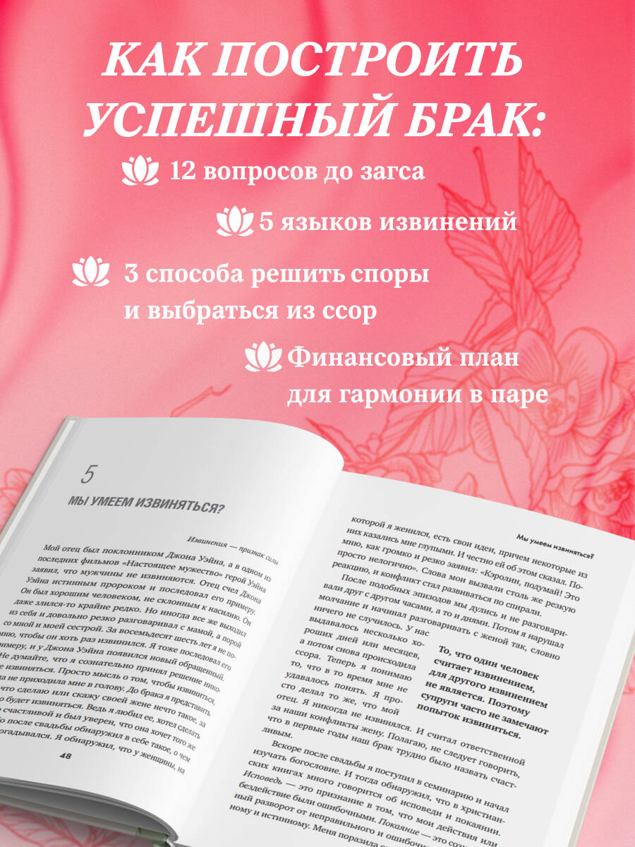 ОДНОЙ ВЛЮБЛЕННОСТИ НЕДОСТАТОЧНО, ЧТОБЫ ПОСТРОИТЬ СЧАСТЛИВЫЙ БРАК. Он неряха, а она терпеть не может бардака. Она обожает шумные вечеринки, а он не выносит толпы. Он записывает каждую покупку, а она тратит деньги, не проверяя баланс по карте. Их брак обречен? Зачастую мы женимся, ослепленные влюбленностью, считая партнера идеальным. Но спустя пару лет после свадьбы начинаем подмечать все недостатки друг друга. Последние 40 лет Гэри Чепмен консультирует супругов, чьи мечты о счастливой семейной жизни разбились о мир грязной посуды, неоплаченных счетов, несогласованных графиков работы и плачущих младенцев. Чепмен убежден: развод - это отсутствие подготовки к браку и навыков партнерства. Он написал эту книгу, чтобы помочь молодым парам осознанно подойти к самому важному шагу в жизни - созданию семьи. Тем, кто уже в браке - не допустить кризиса, а если он случился, успешно его преодолеть. Гэри Чепмен поможет вам построить отношения своей мечты. В ЭТОЙ КНИГЕ: • 12 вопросов, на которые нужно ответить, прежде чем идти в загс. • 5 языков извинений. • 3 позитивных способа решения конфликтов. • Финансовый план, который помог тысячам пар избежать войны за деньги.| Издательство | ООО "Издательство "Эксмо" |