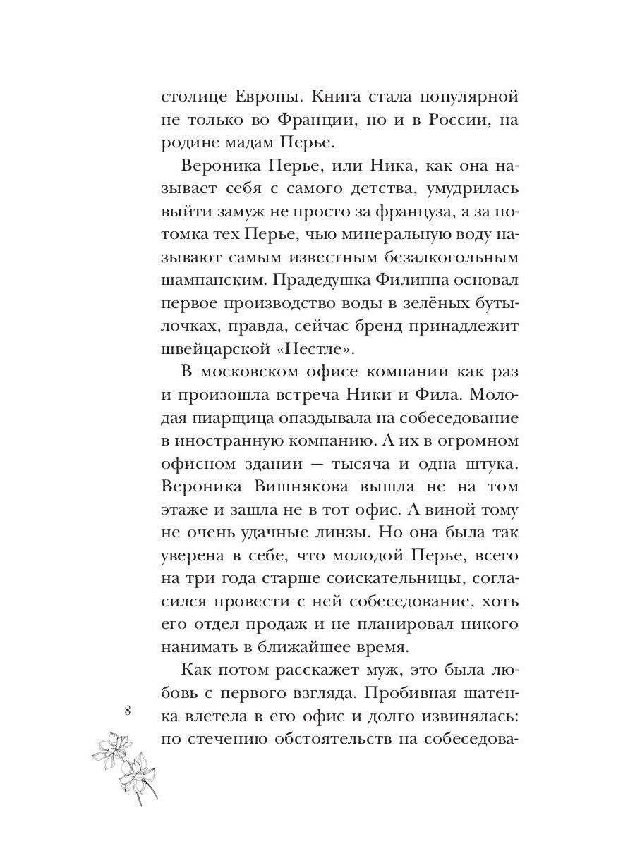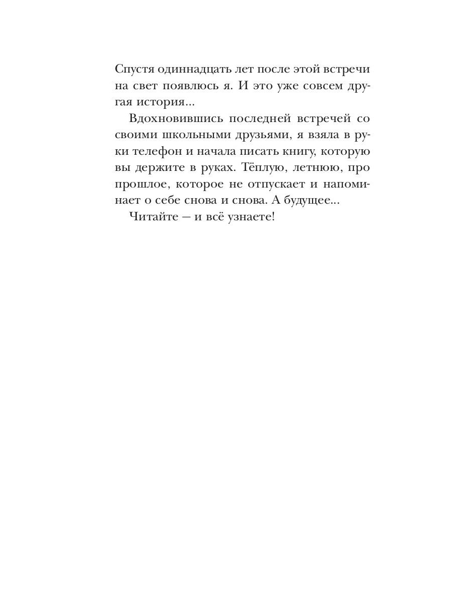 Ника Перье, живущая в Париже, получает приглашение на встречу одноклассников в родной Нижний Новгород. События минувших лет напоминают ей о школьной любви, которая осталась в прошлом. А в настоящем - молодые и красивые Ника и Стас, которые просто стали старше. Могут ли чувства жить двадцать лет и чем закончится эта встреча?| Издательство | Т8 RUGRAM |