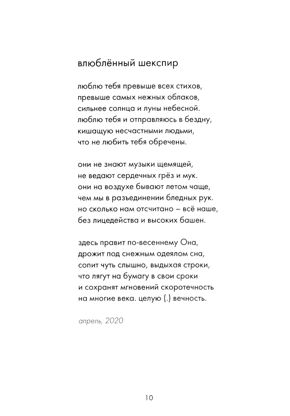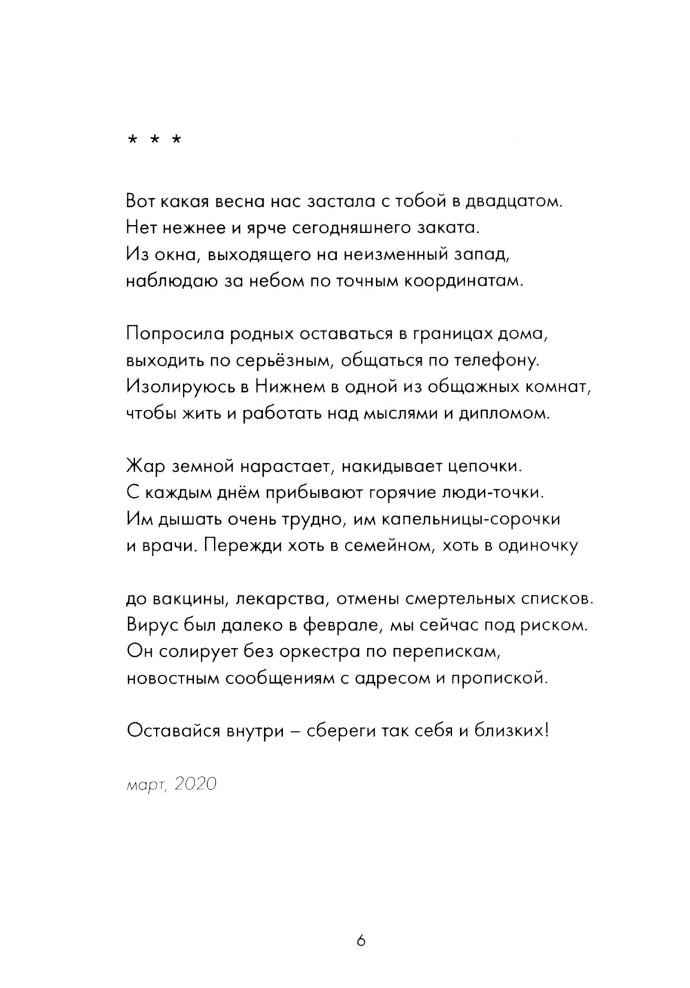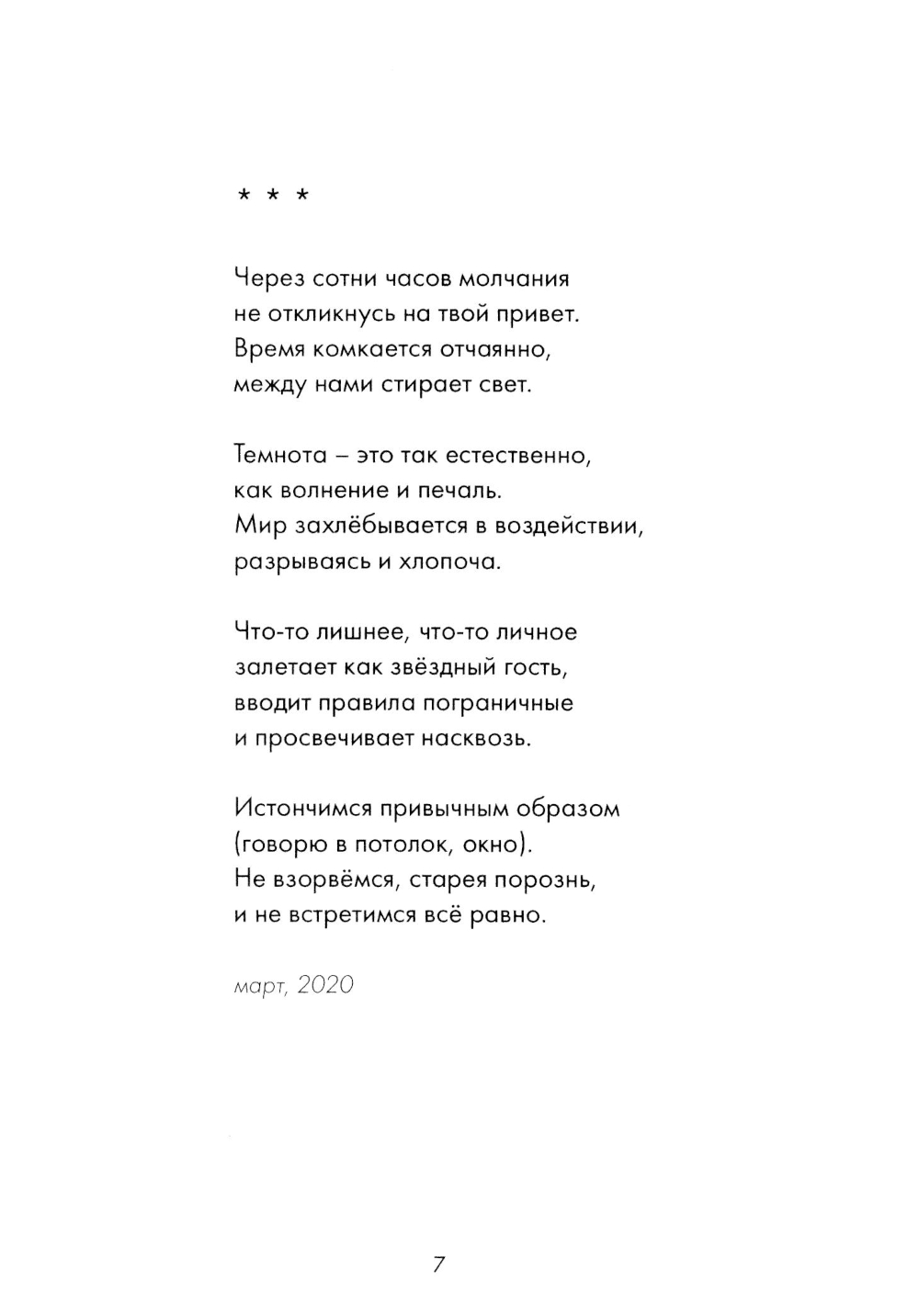 Здравствуй. На страницах далее собраны стихотворения 2020-2024. Эту книгу я посвящаю Михаилу Беагону, своей маме Нине, прекрасному другу и художнику Алисе Александровой, моим друзьям и всем тем, кто верит в меня, читает и вдохновляет на поэтическое уже долгое время. Книга разделена на семь частей, таких некалендарных мини-периодов, для того чтобы между разделами можно было набрать свежего воздуха и лучше расслышать мелодию слов.| Издательство | ИПО "У Никитских ворот" |
