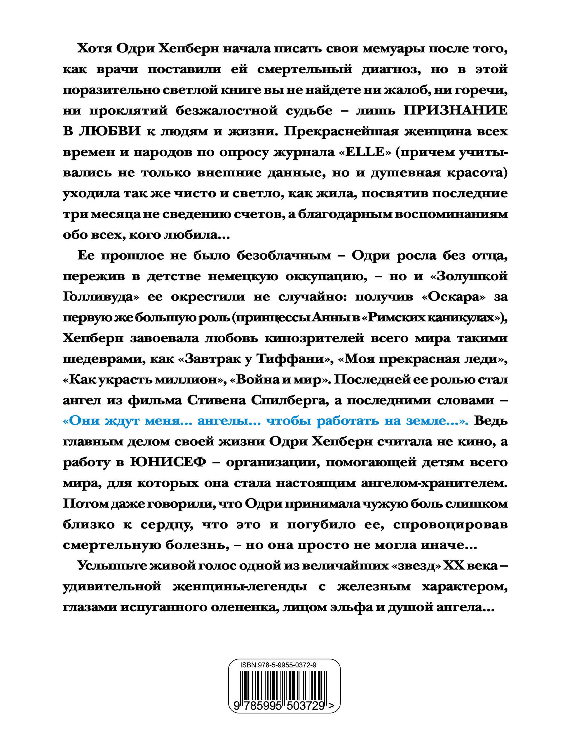 Хотя Одри Хепберн начала писать свои мемуары после того, как врачи поставили ей смертельный диагноз. Но в этой поразительно светлой книге вы не найдете ни жалоб, ни горечи, ни проклятий безжалостной судьбе - лишь ПРИЗНАНИЕ В ЛЮБВИ к людям и жизни. Прекраснейшая женщина всех времен и народов по опросу журнала «ELLE» (причем учитывались не только внешние данные, но и душевная красота) уходила так же чисто и светло, как жила, посвятив последние три месяца не сведению счетов, а благодарным воспоминаниям обо всех, кого любила… Ее прошлое не было безоблачным - Одри росла без отца, пережив в детстве немецкую оккупацию, - но и «Золушкой Голливуда» ее окрестили не случайно: получив «Оскара» за первую же большую роль (принцессы Анны в «Римских каникулах»), Хепберн завоевала любовь кинозрителей всего мира такими шедеврами как «Завтрак у Тиффани», «Моя прекрасная леди», «Как украсть миллион», «Война и мир». Последней ее ролью стал ангел из фильма Стивена Спилберга, а последними словами - «Они ждут меня… ангелы… чтобы работать на земле…» Ведь главным делом своей жизни Одри Хепберн считала не кино, а работу в ЮНИСЕФ - организации, помогающей детям всего мира, для которых она стала настоящим ангелом-хранителем. Потом даже говорили, что Одри принимала чужую боль слишком близко к сердцу, что это и погубило ее, спровоцировав смертельную болезнь, - но она просто не могла иначе… Услышьте живой голос одной из величайших «звезд» XX века - удивительной женщины-легенды с железным характером, глазами испуганного олененка, лицом эльфа и душой ангела…| Издательство | Яуза-пресс ООО |