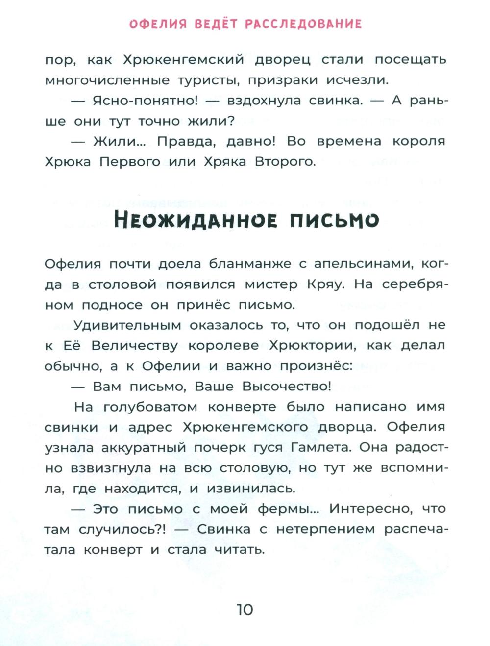 Жизнь в Хрюкенгемском дворце показалась свинке Офелии приятной и безоблачной. Хотя среди королевской роскоши ей не хватало друзей с любимой фермы и детективных расследований. И вот неожиданно Офелия получает письмо от гуся Гамлета с просьбой приехать и помочь поймать... привидение! Разве можно было упустить такой шанс?! В третьей книге серии «Хрюкающий детектив» читателя ждут приключения и новые расследования! Для младшего школьного возраста.| Издательство | Детская литература |