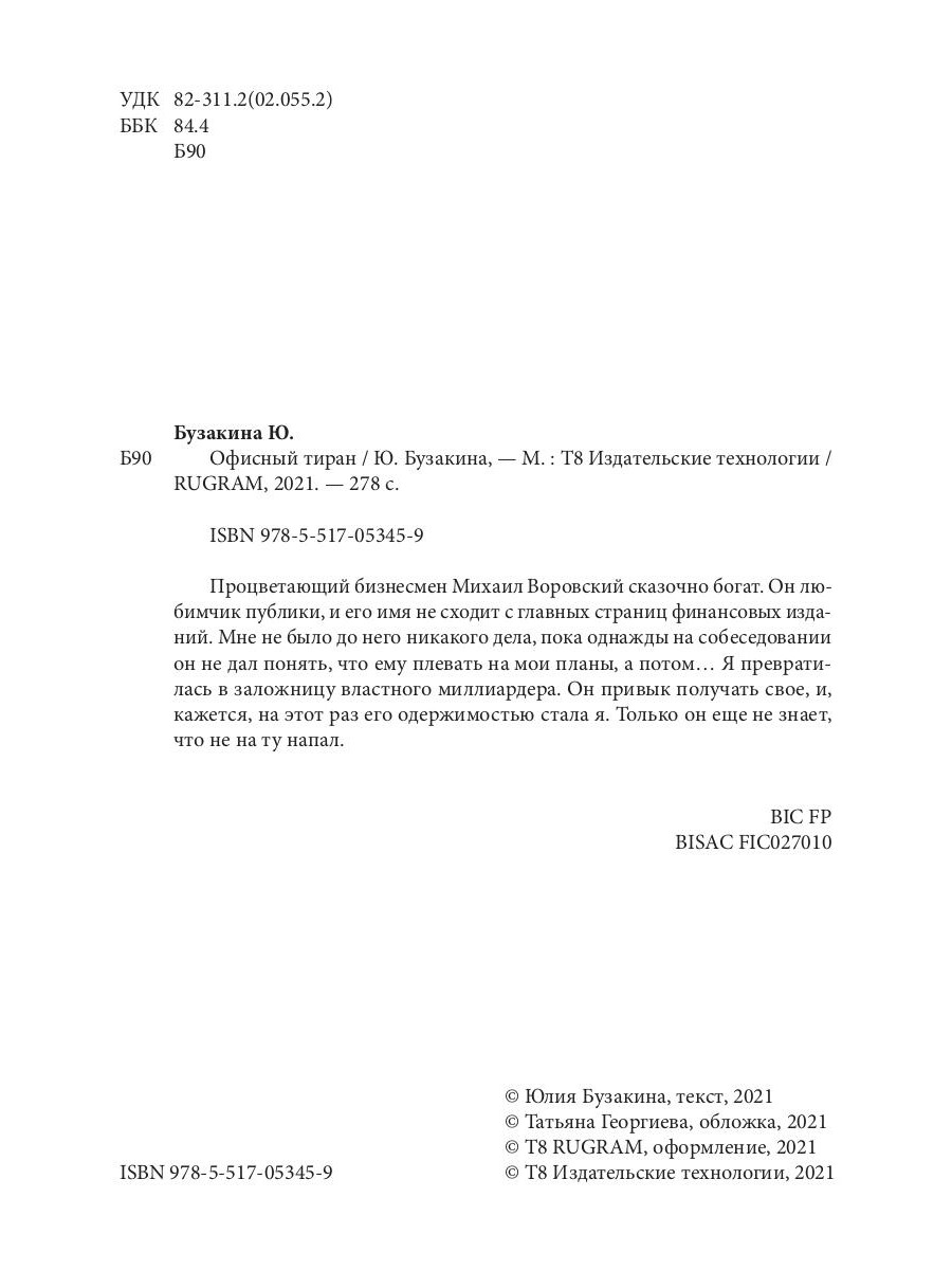 Процветающий бизнесмен Михаил Воровский сказочно богат. Он любимчик публики, и его имя не сходит с главных страниц финансовых изданий. Мне не было до него никакого дела, пока однажды на собеседовании он не дал понять, что ему плевать на мои планы, а потом…Я превратилась в заложницу властного миллиардера. Он привык получать свое, и, кажется, на этот раз его одержимостью стала я. Только он еще не знает, что не на ту напал.| Издательство | Т8 RUGRAM |