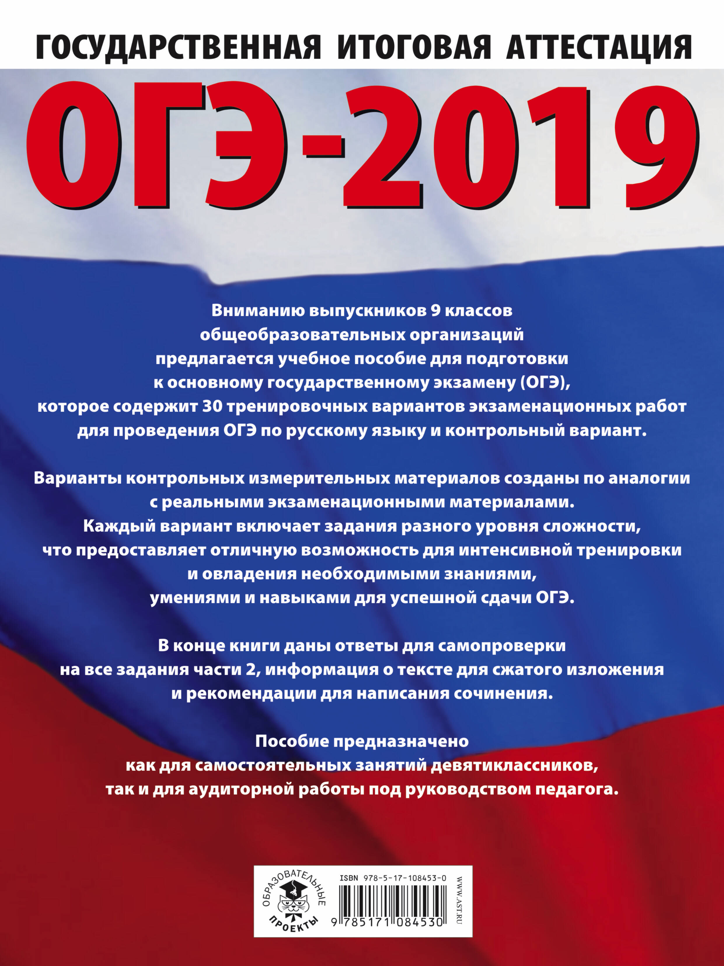 ОГЭ-2019. Русский язык (60х84/8) 30 тренировочных вариантов экзаменационных работ для подготовки к ОГЭ