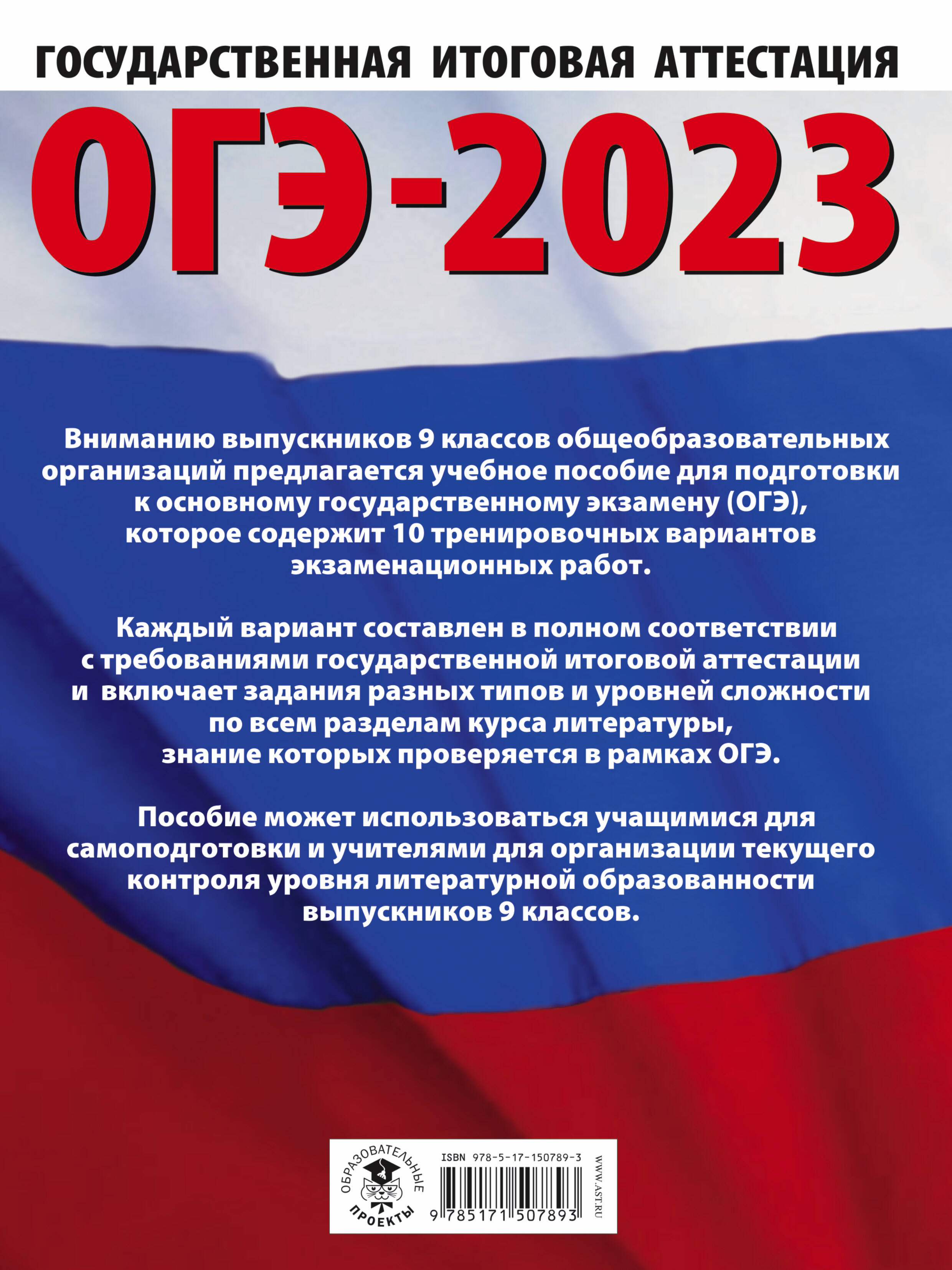ОГЭ-2023. Литература (60x84/8).10 тренировочных вариантов экзаменационных работ для подготовки к основному государственному экзамену
