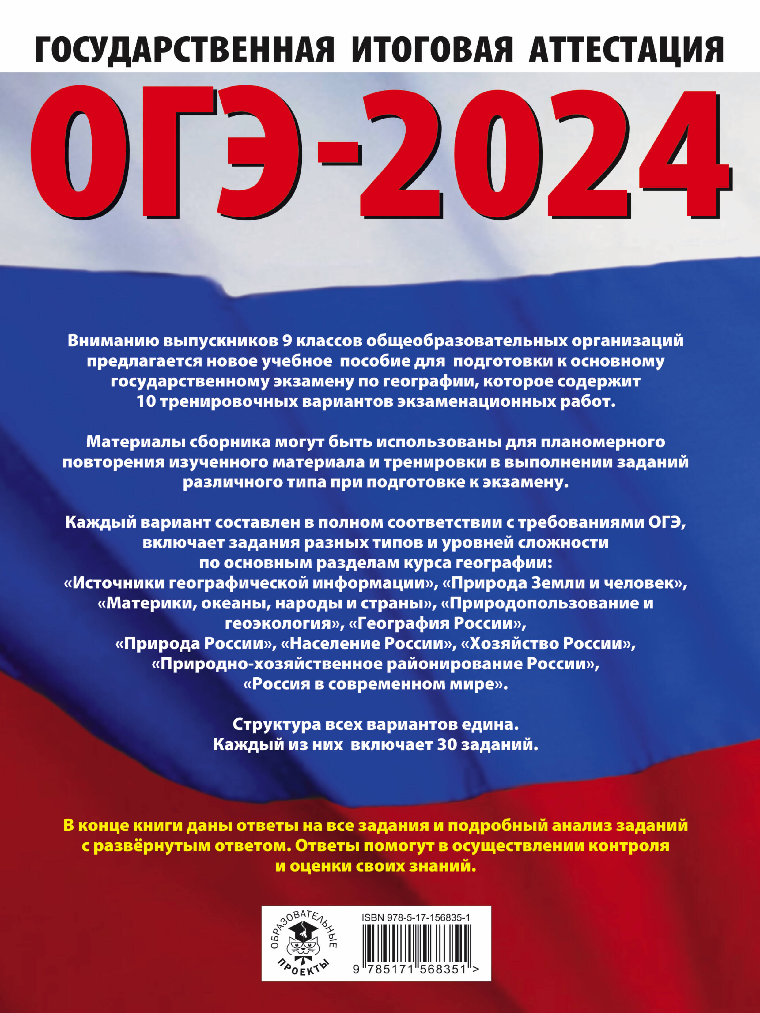 ОГЭ-2024. География (60x84/8). 10 тренировочных вариантов экзаменационных работ для подготовки к основному государственному экзамену