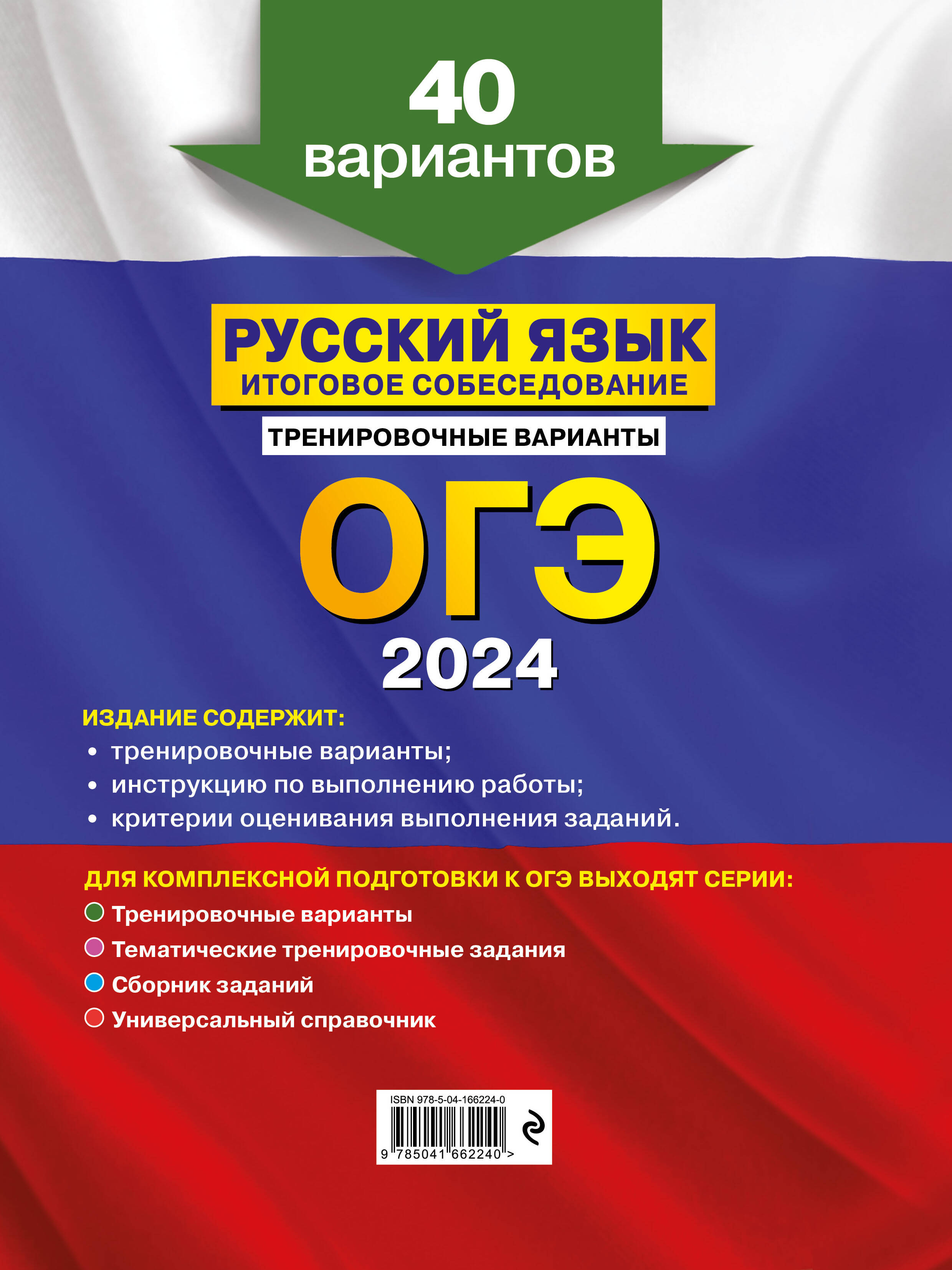 Аннотация: ОГЭ-2024. Русский язык. Итоговое собеседование. Тренировочные варианты. 40 вариантов
