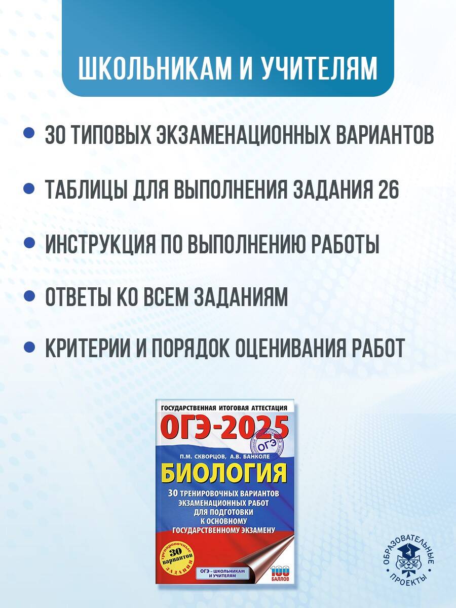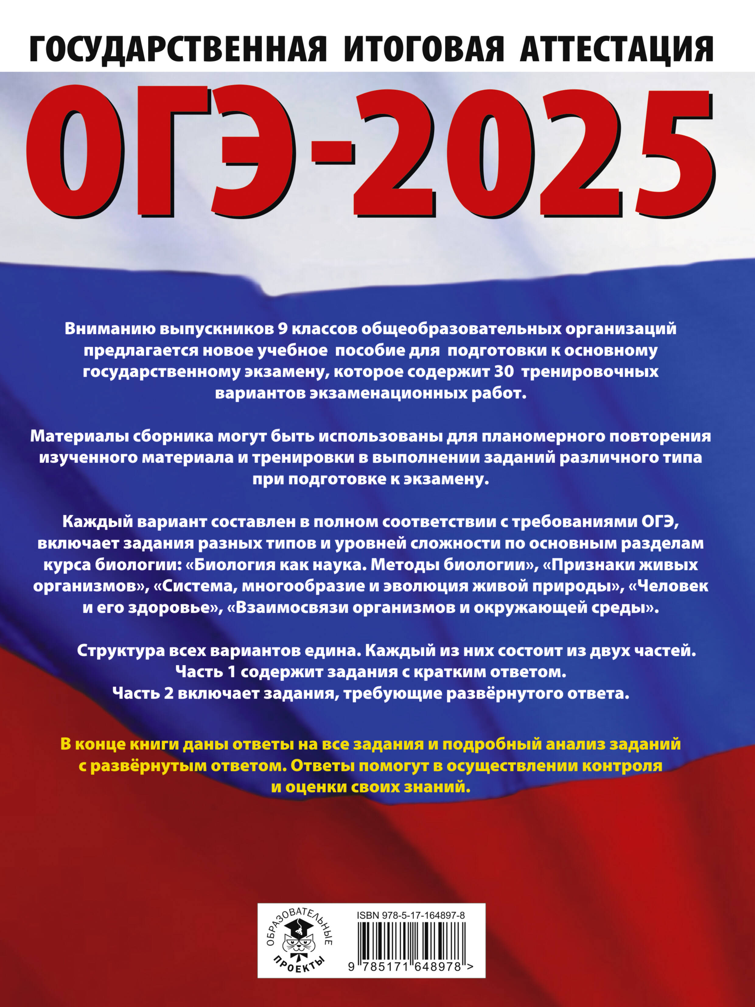Аннотация: ОГЭ-2025. Биология. 30 тренировочных вариантов экзаменационных работ для подготовки к основному государственному экзамену